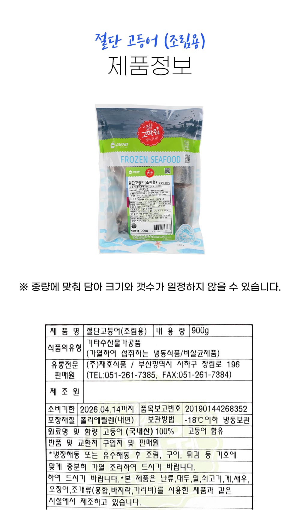 • [재호식품] 절단고등어 조림용 900g, 국내산