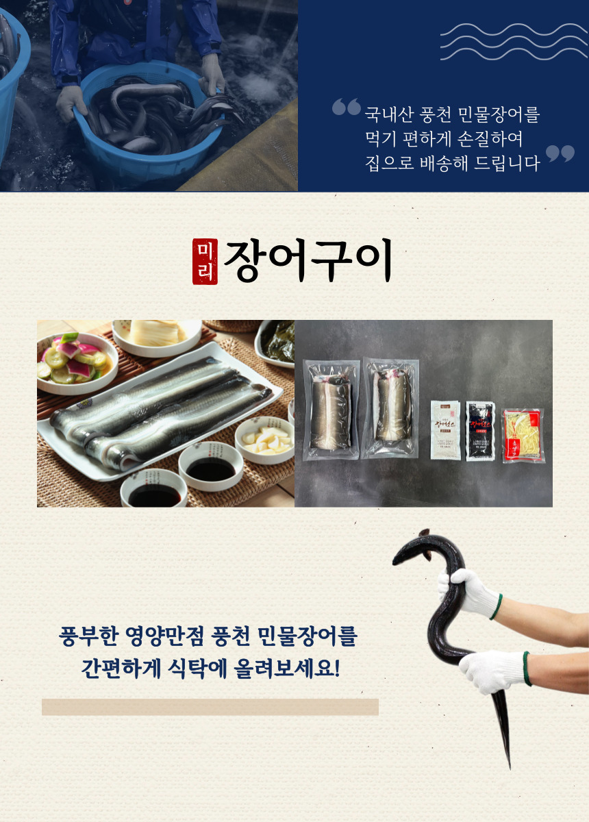 • 국내산 장어 민물장어 풍천민물장어 손질장어 생물손질 - 실중량 450g/550g/650g/750g