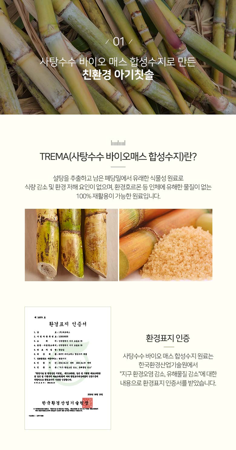 친환경 사탕수수 유래 플라스틱을 사용한 자연을 위한 건강한 아기칫솔