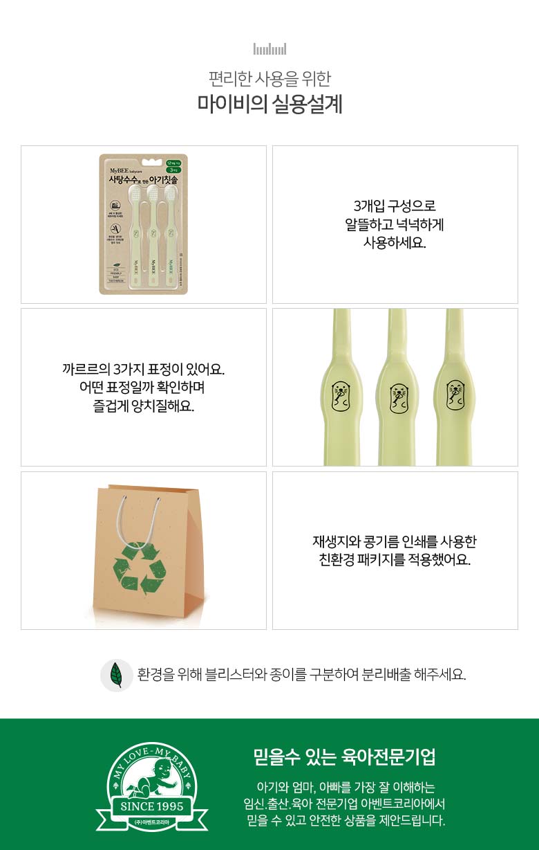 • 마이비 사탕수수로 만든 아기칫솔(3개입)x3개