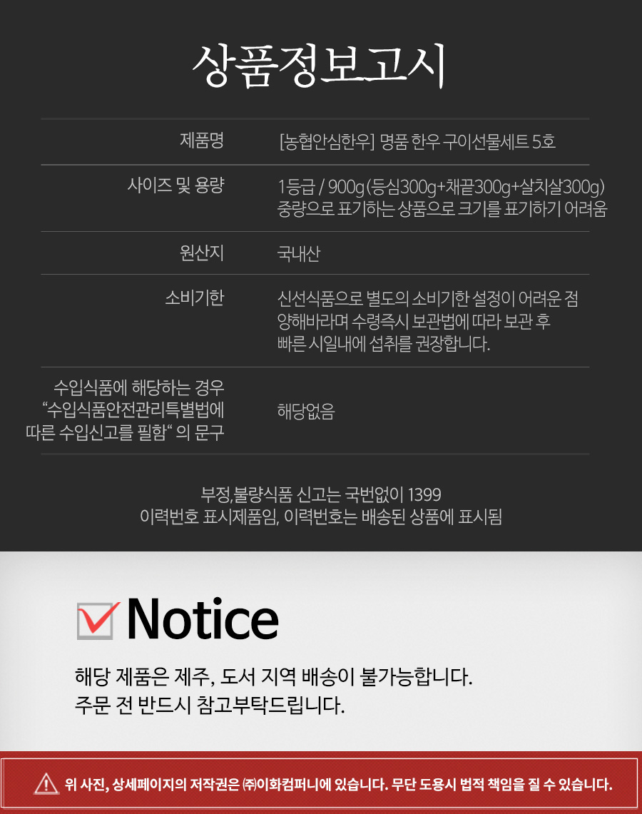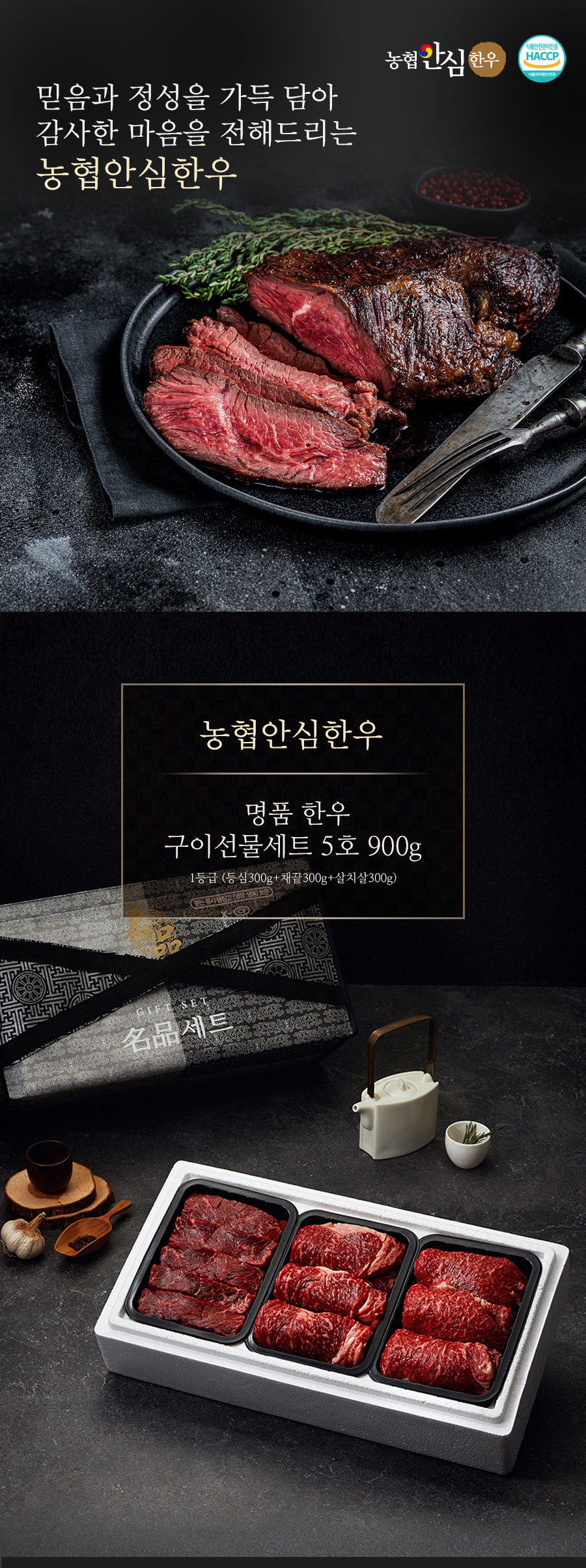 • [농협안심한우] 명품 한우 구이선물세트 5호 900g (등심+채끝+살치살,각300g씩)