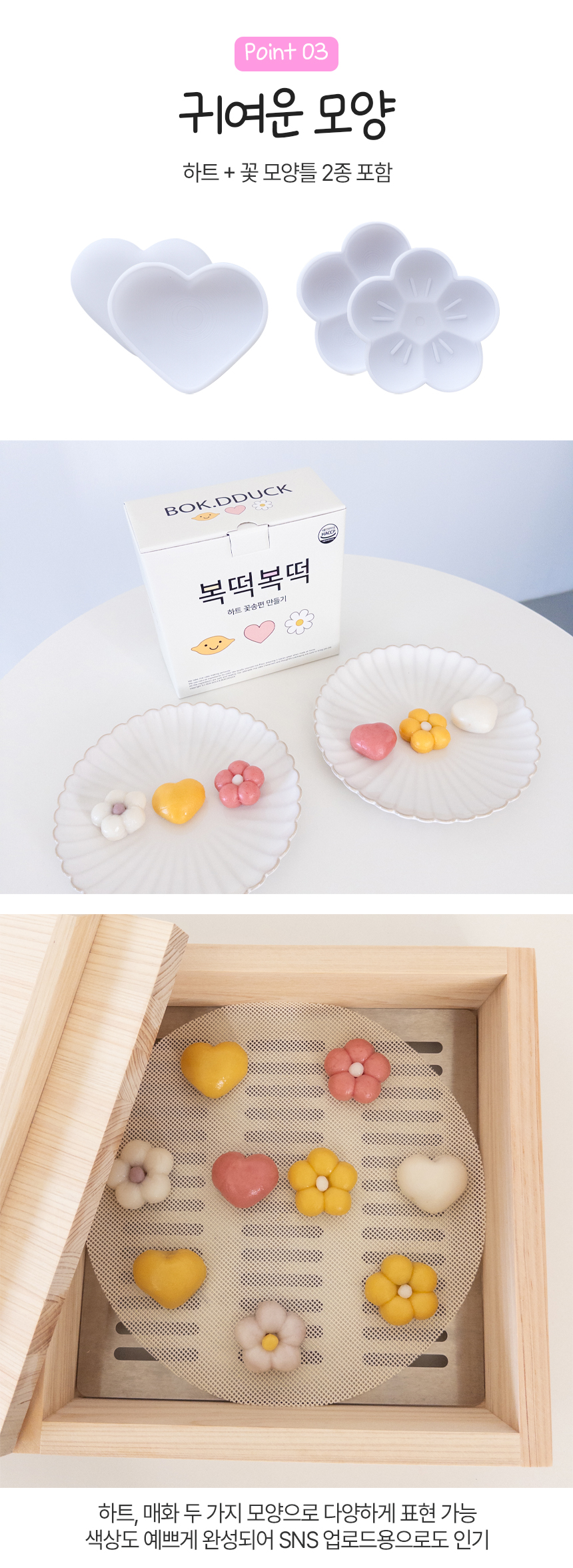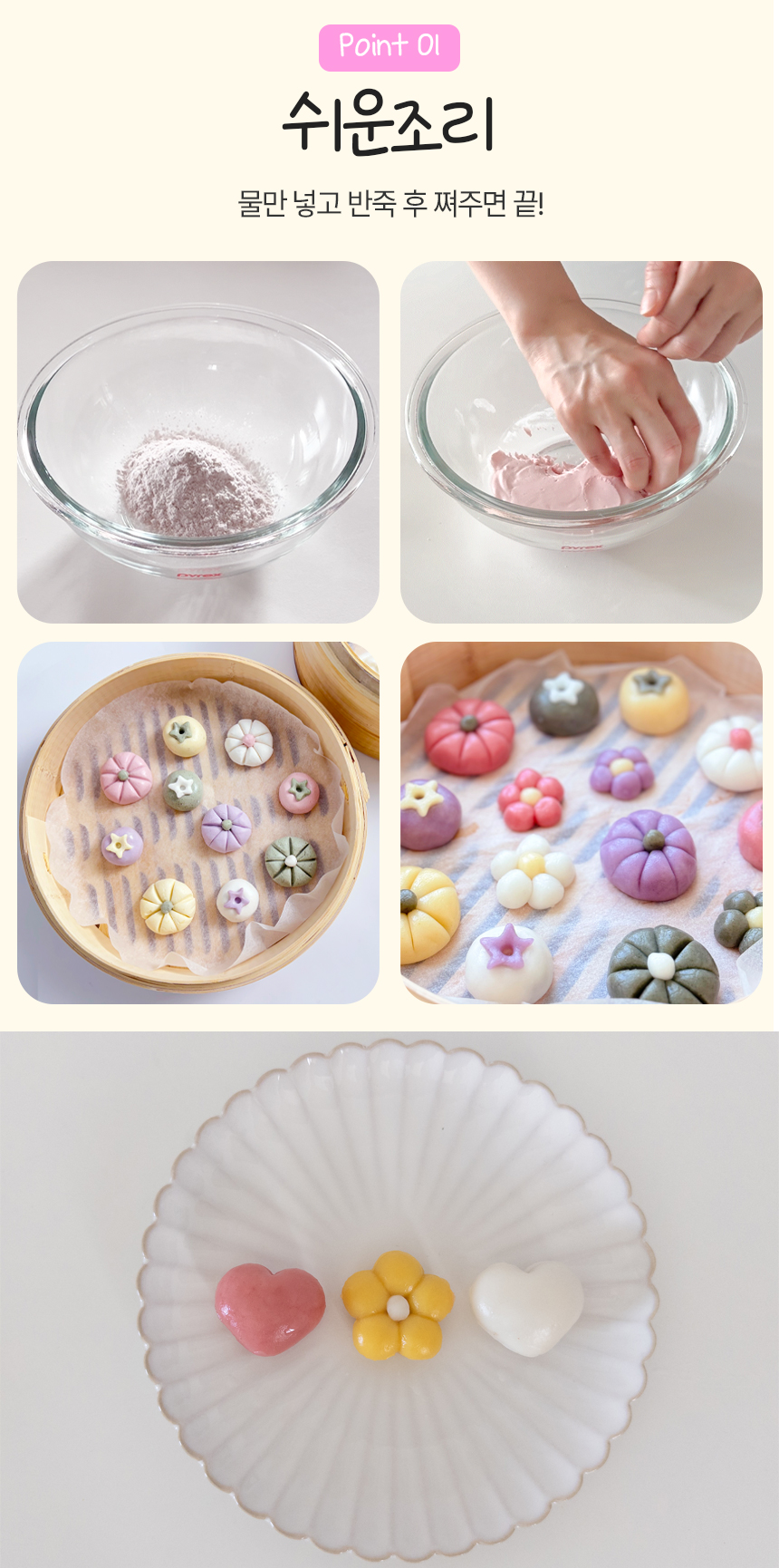 국산쌀가루로 언제든지 바로 만들어 먹을수 있는 하트 꽃 송편 만들기 키트