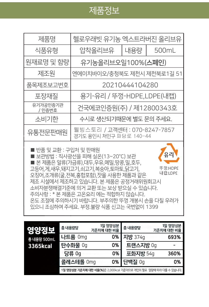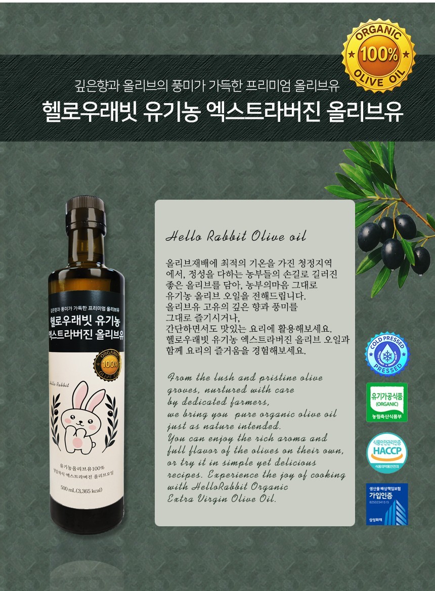 • 프리미엄 유기농 엑스트라버진 올리브오일, 산도0.18 단일품종 아르베키나 올리브유
