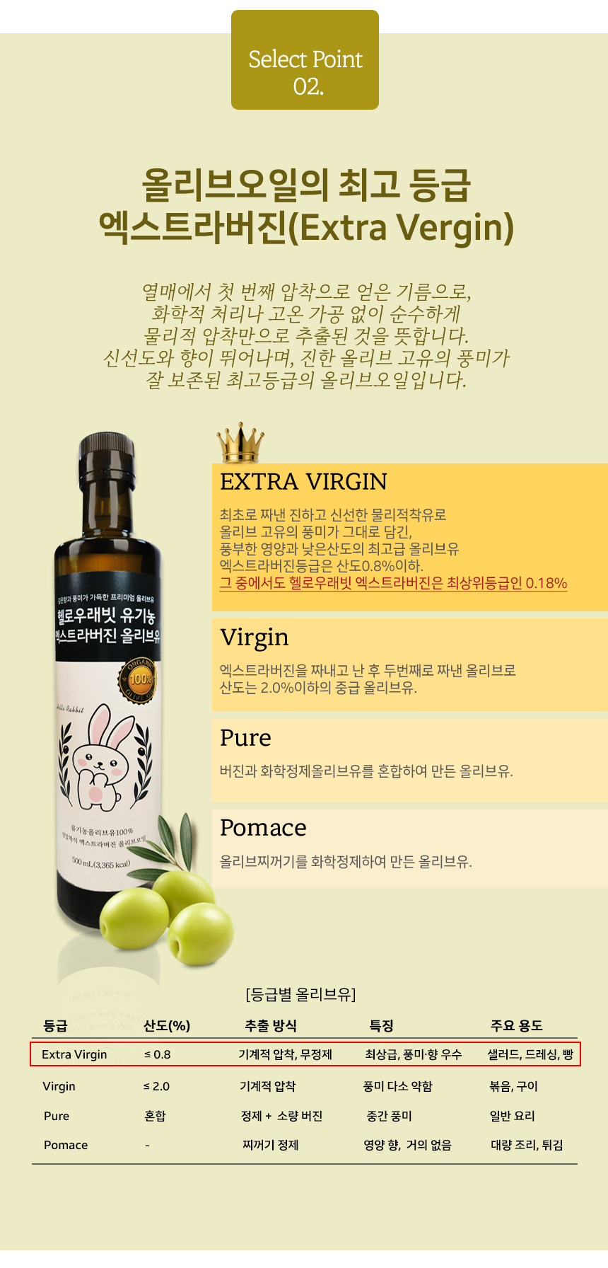 프리미엄 유기농 엑스트라버진 올리브오일, 산도0.18 단일품종 아르베키나 올리브유