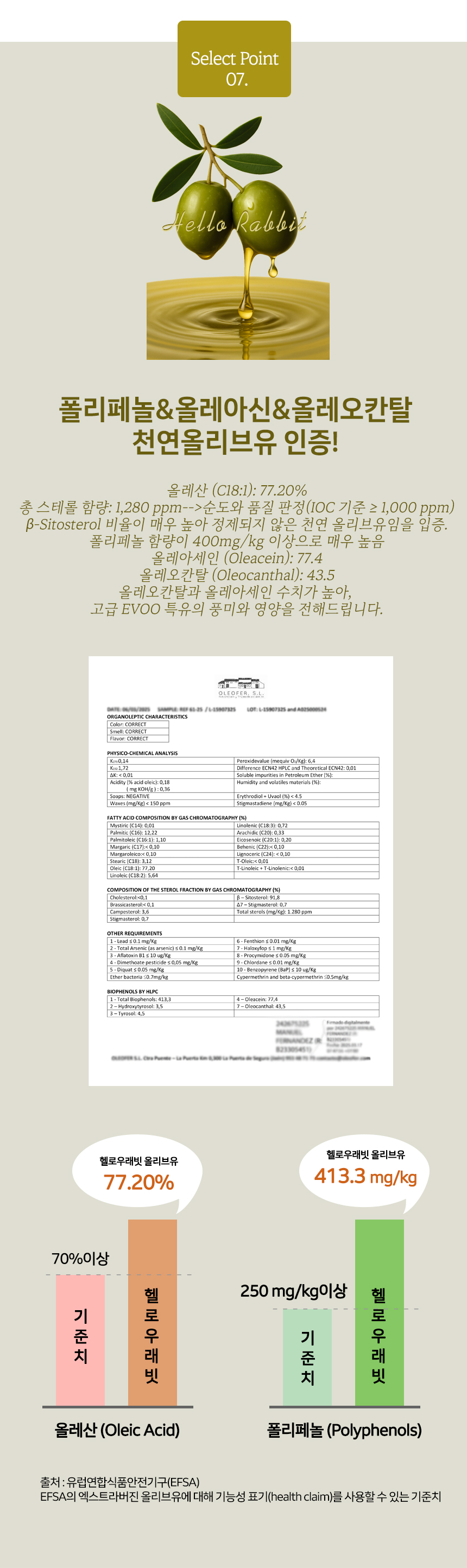 산도0.18 엑스트라버진중 최고급 단일품종 아르베키나 올리브유입니다.