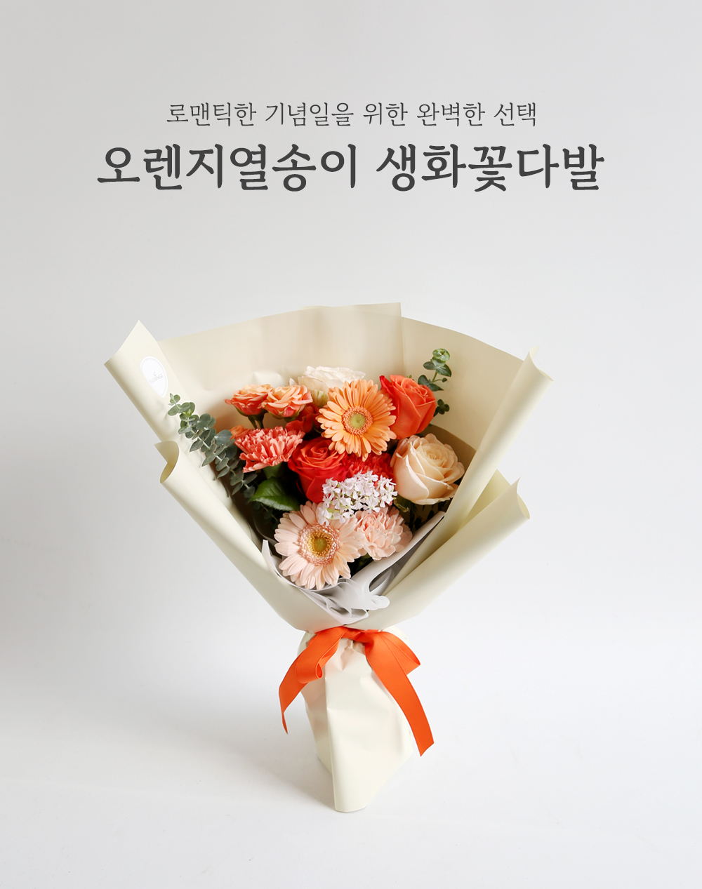 플로라운지 | 과즙미 톡톡 터지는 오렌지 열송이 생화꽃다발. 기분 좋은 에너지를 선물해 보세요! 플로라운지에서 프리미엄 꽃배송을 즐겨보세요.