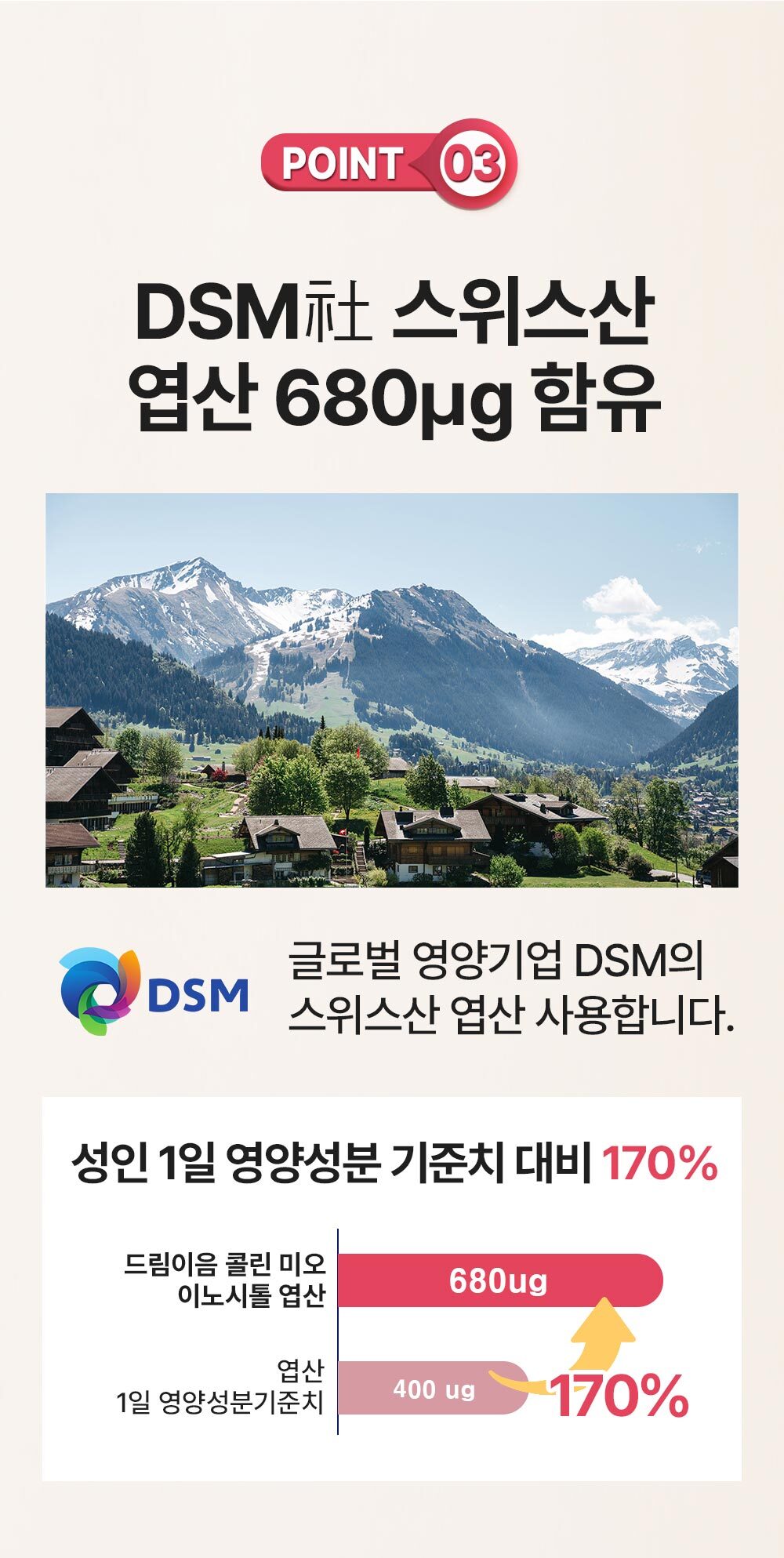 영양성분 -총 내용량 135 g (4.5 g x 30포) 1일섭취량(4.5 g)당 20 kcal 1포당 : 나트륨 0.1 mg 0% , 탄수화물 4.4 g 1% , 당류 0.01 g 0%, 지방 0.03g 0% , 트랜스지방 0 g -, 포화지방 0.005 g 0% , 콜레스테롤 0 mg 0% , 단백질 0.04 g 0% 엽산 680㎍ DFE 170% 총 내용량 당 : 나트륨 5 mg 0% , 탄수화물 131 g 40% , 당류 0.3 g 0%, 지방 0.8g 1% , 트랜스지방 0 g, 포화지방 0.14 g 1% , 콜레스테롤 0 mg 0% , 단백질 1 g 2% 엽산 20,400㎍ DFE 5,100%