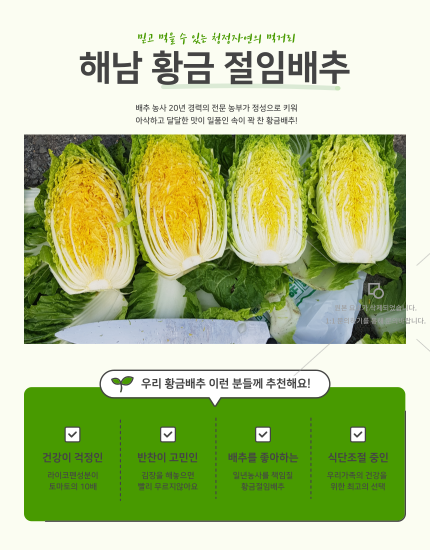 라이코펜이 함유된 황금배추로 맛있게 절여드립니다~~