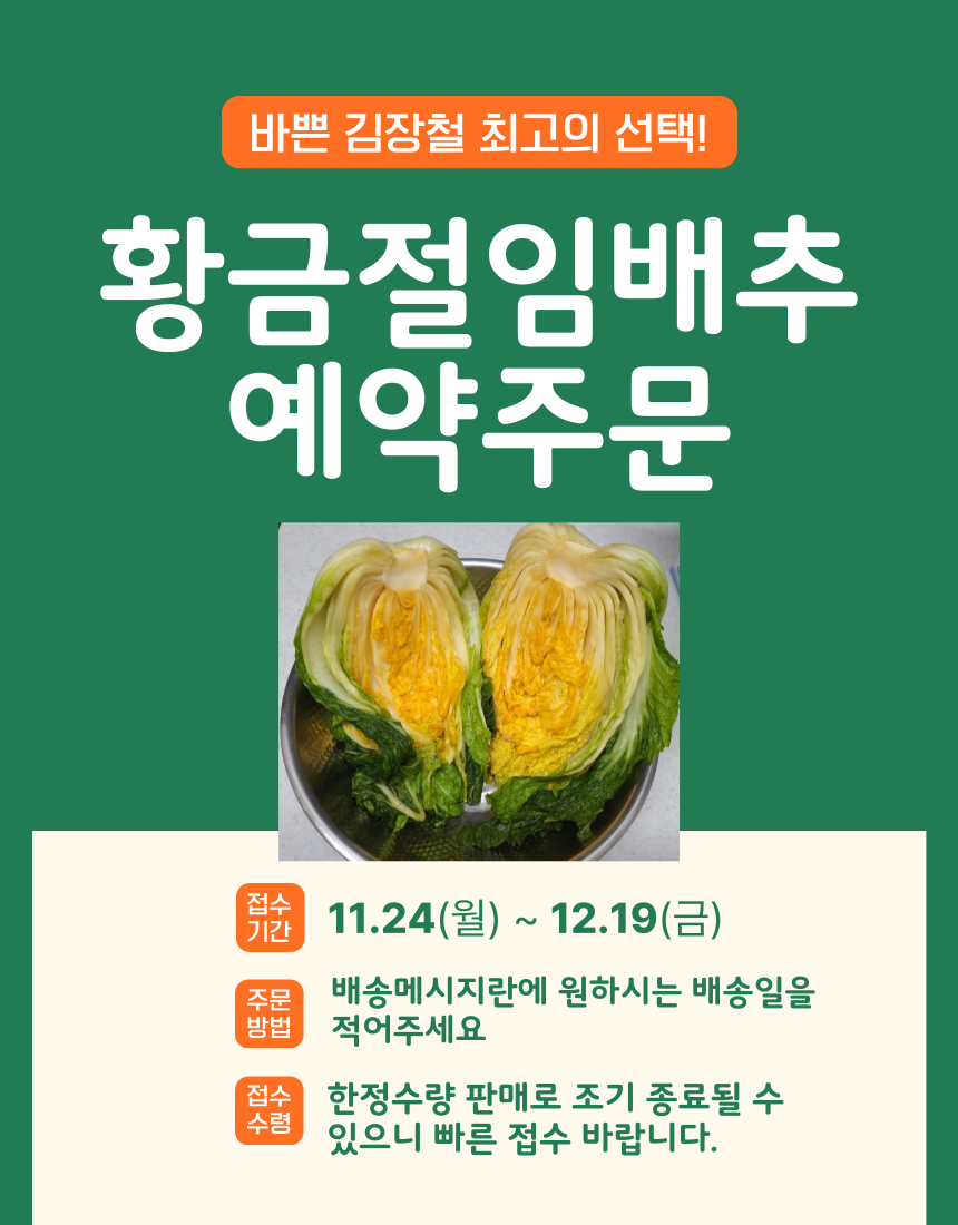 아삭함이 오래 유지되는 맛있는 황금배추로 1년농사 김장하세요^^