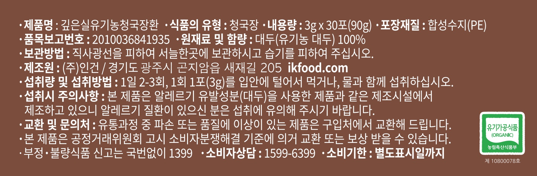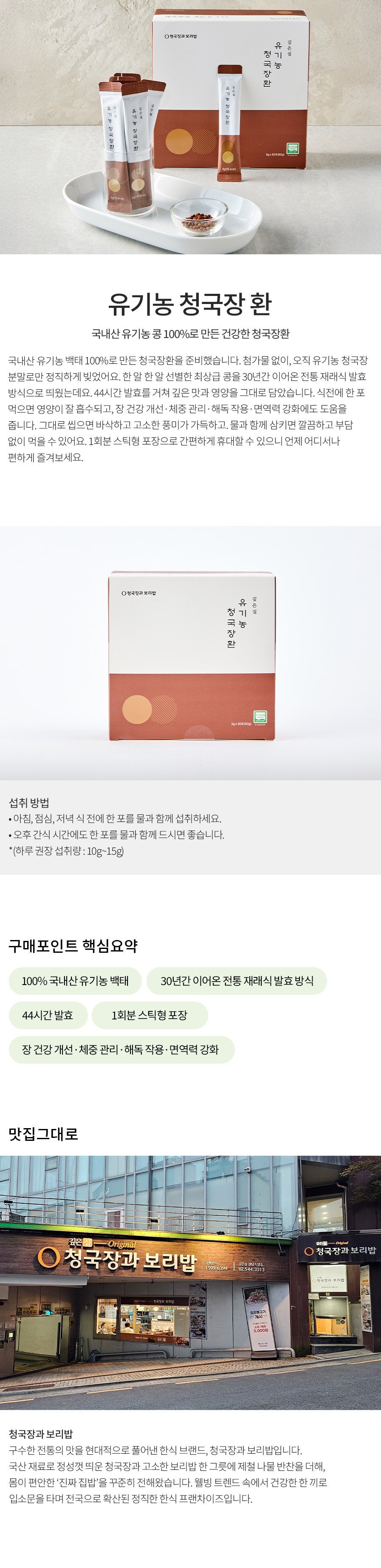[입점특가] 유기농 국산 청국장 환(3g x 30포)
