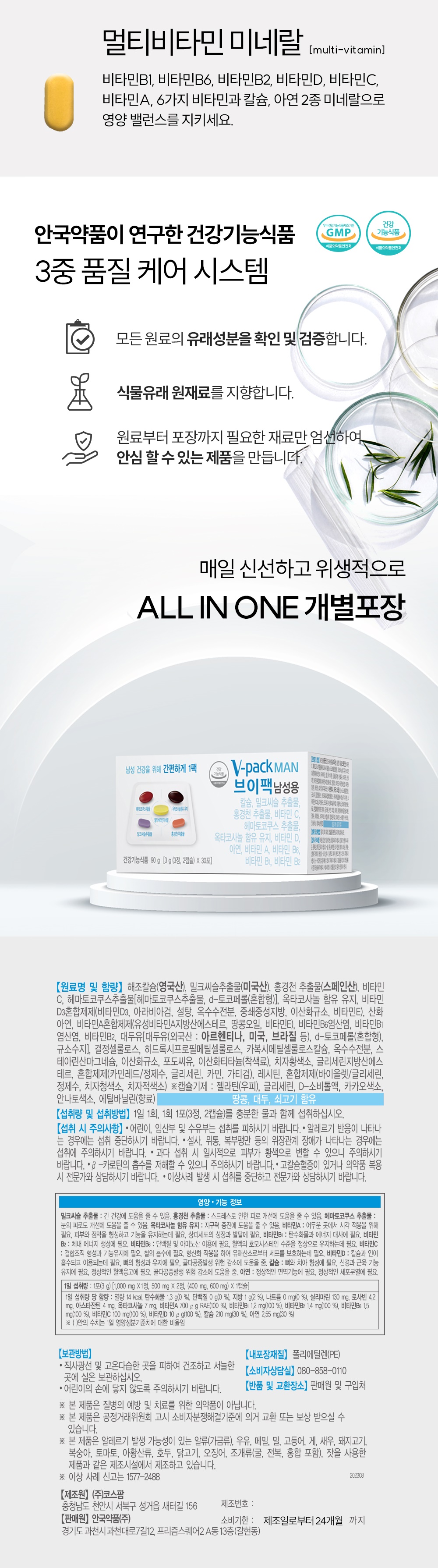 • 안국약품 브이팩 종합 비타민 남성용 1박스 3g x 30포