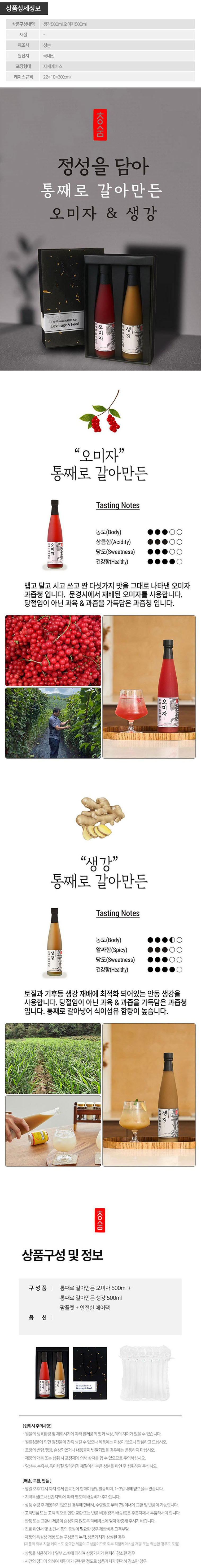매실원액:매실추출액[고형분4.8%이상,국내산]70%,정백당,프락토올리고당,사과산 오미자원액:오미자추출액[고형분4.0%이상,국내산]70%,정백당,프락토올리고당 생강원액:생강추출액[고형분4.5%이상,국내산]70%,유기농비정제원당,프락토올리고당,사과산 유자원액:유자추출액[고형분4.8%이상(국내산)]70%,정백당,프락토올리고당,난소화성말토덱스트린,사과산