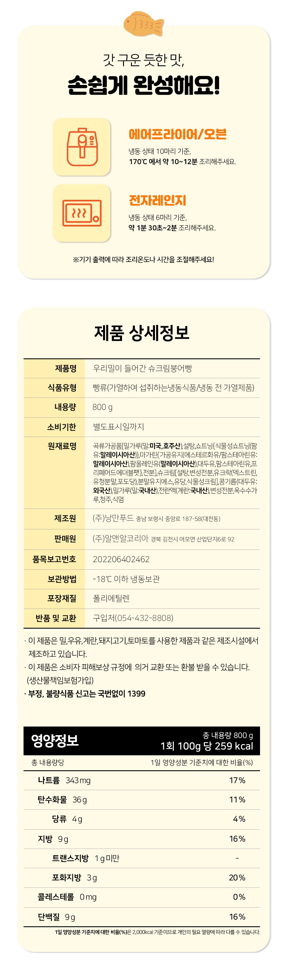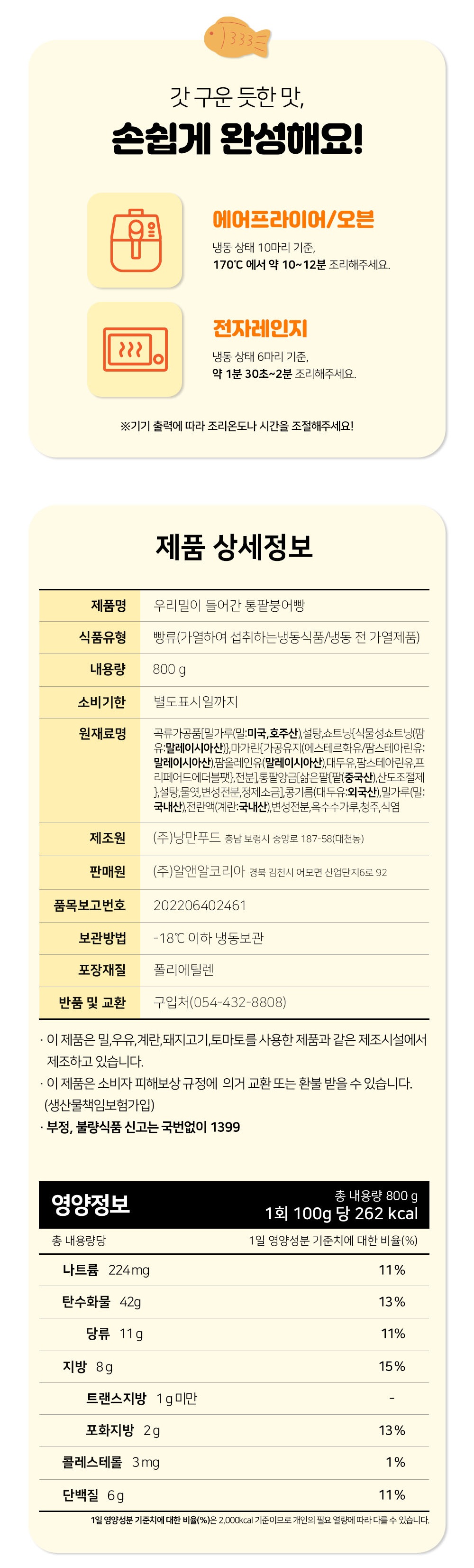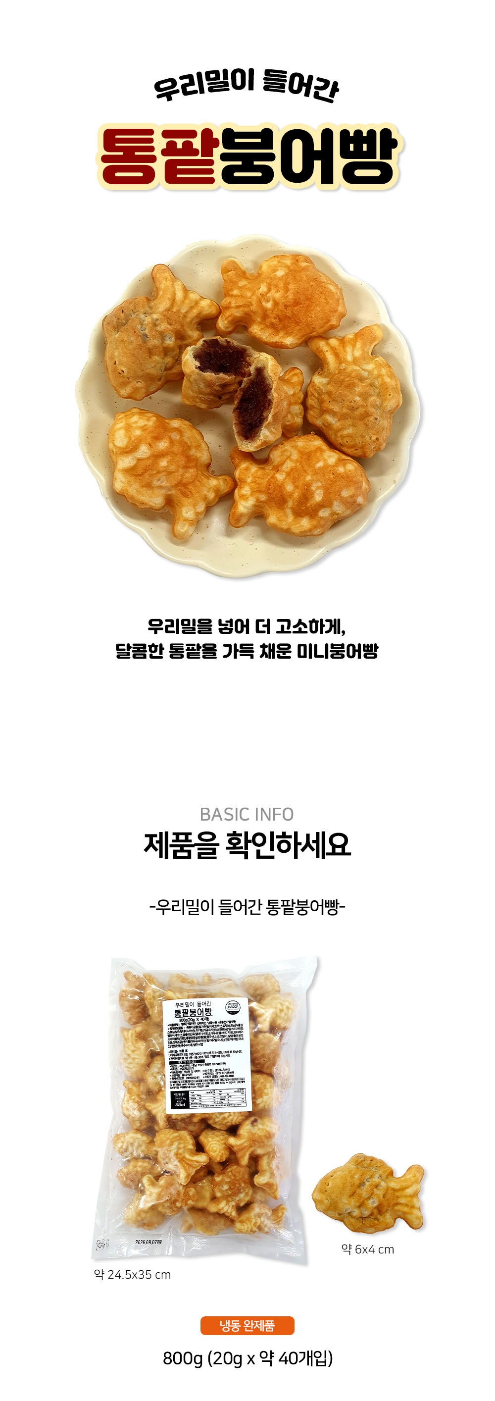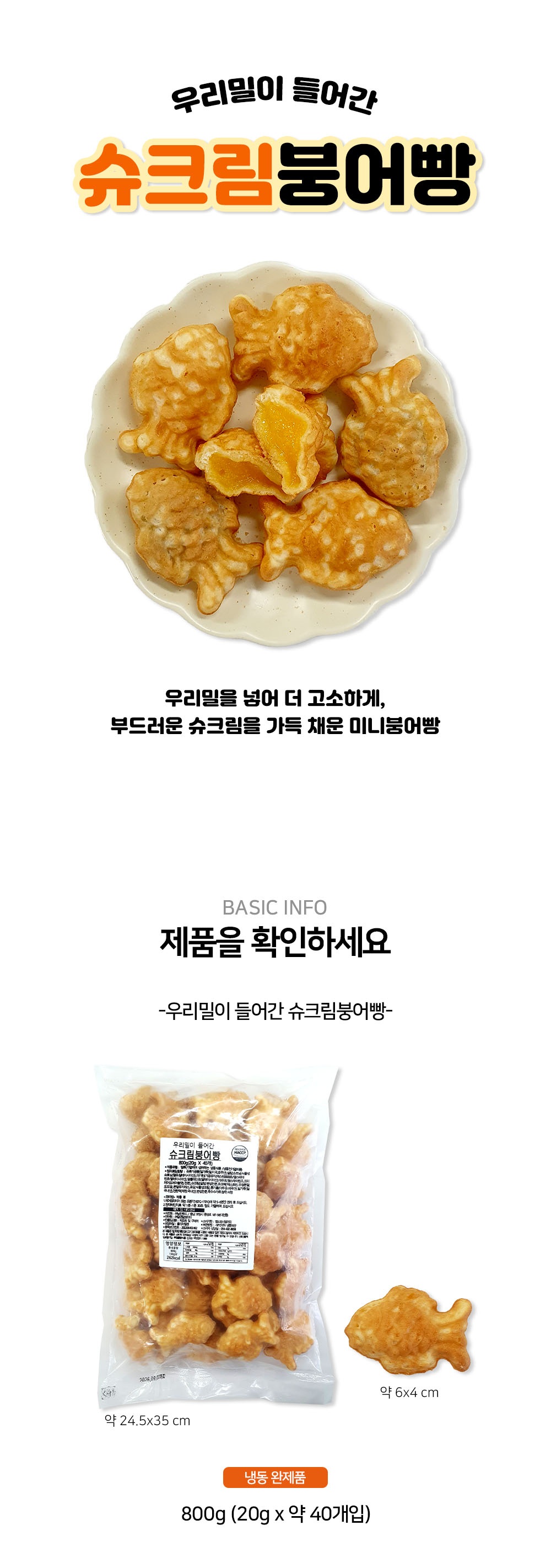 • 알앤알 우리밀이 들어간 미니 붕어빵 2종 800g 2봉(팥, 슈크림)