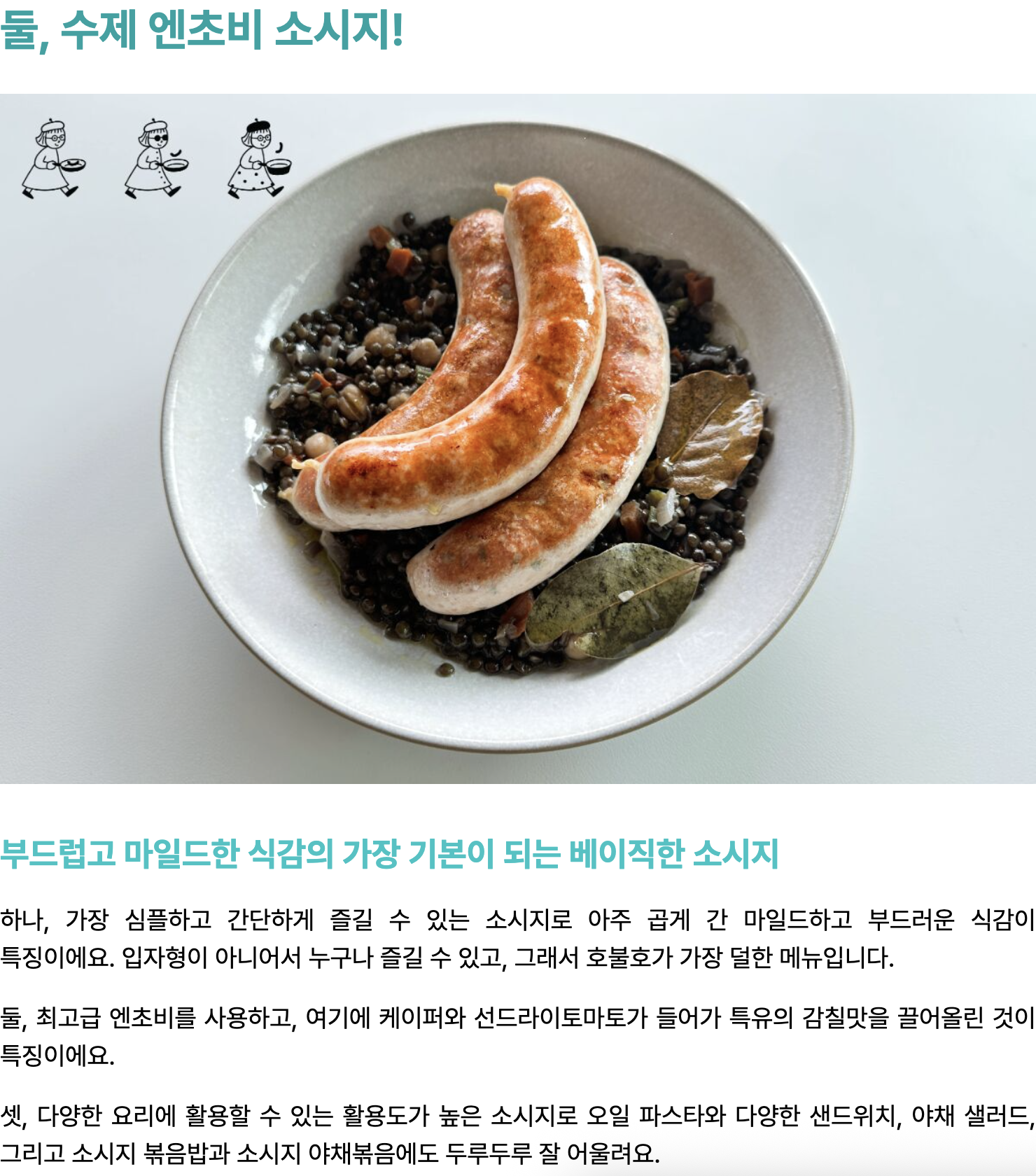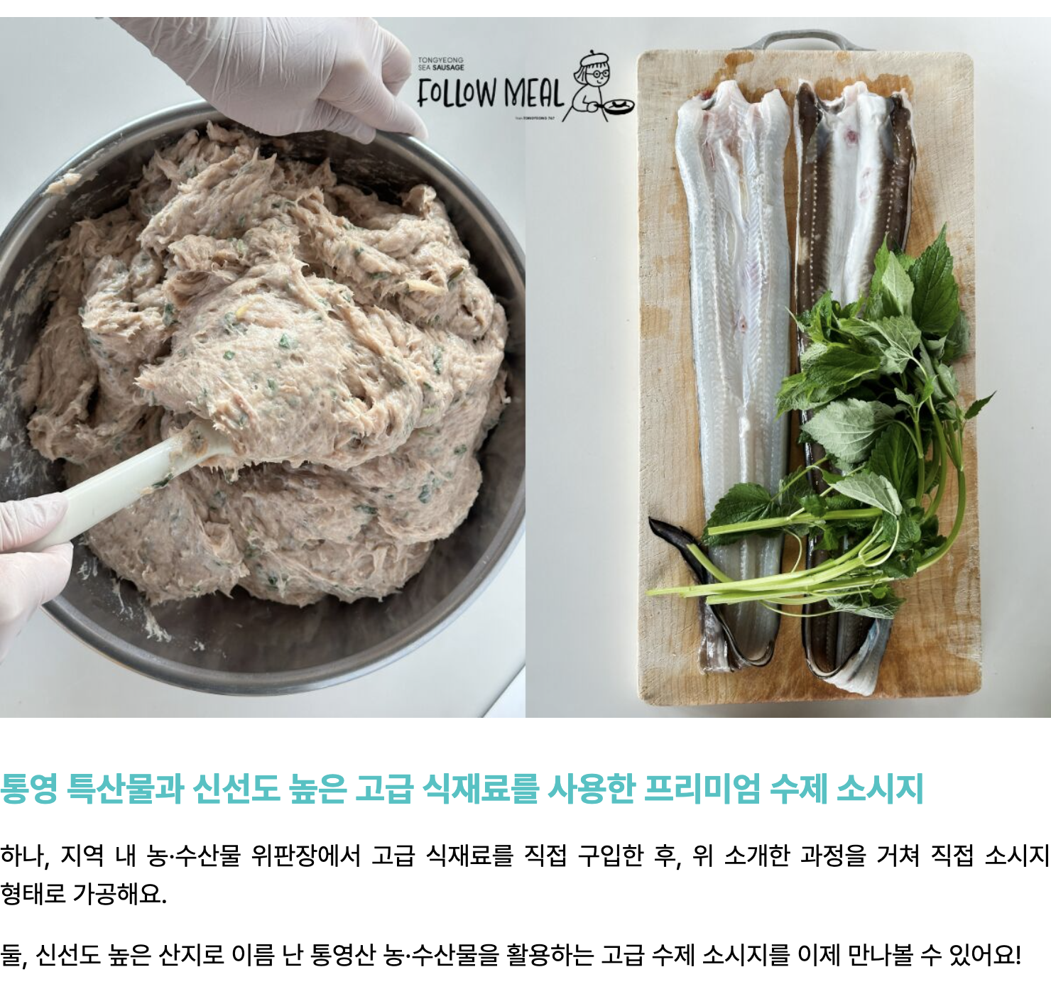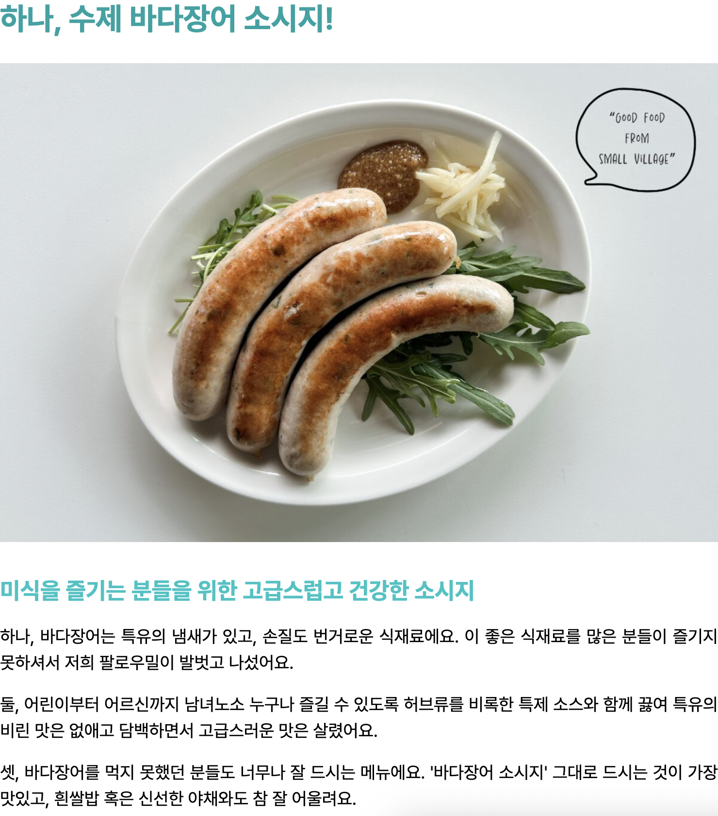 바다의 신선함을 느낄 수 있는 바다장어, 엔초비, 미역해초 수제소시지