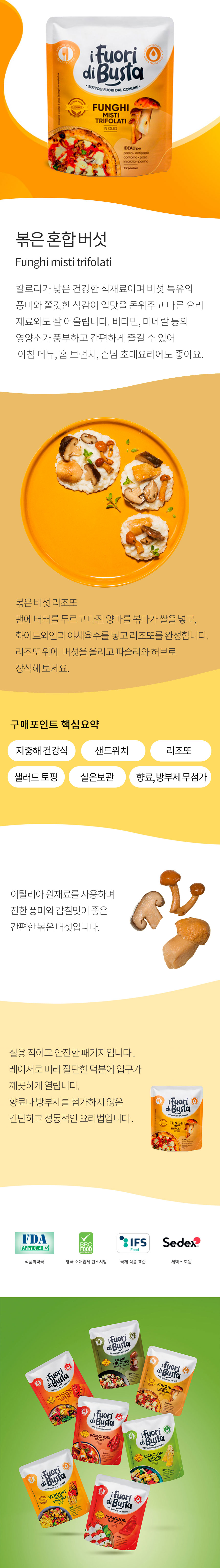 맛버섯 36.88%, 붉은젖버섯 1 8.44%. 그물버섯 18.44% 표고버섯 18,44%, 해바라기오일 6%. 식염 합성향료(버섯향) 0.92%, 건조마늘 0.08%, 건조양피 0.09%, 건파슬리 0.02%, 비타민C, 구연신