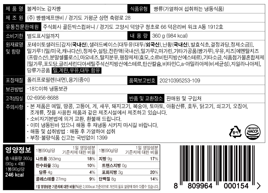 • [입점특가] 볼케이노 감자빵 1박스(90gx4개입)