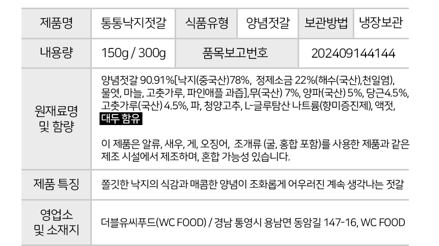 통영애서 통통낙지젓갈 150g / 300g