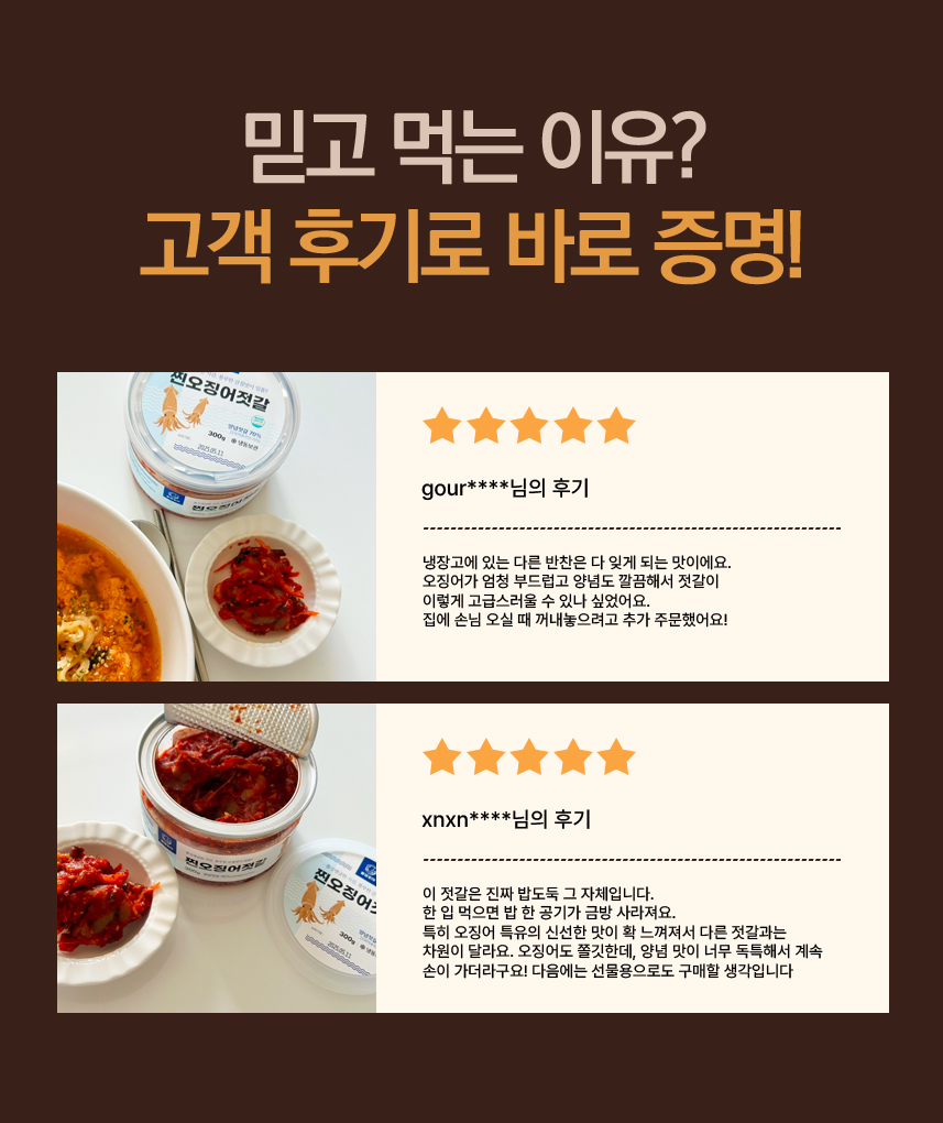 [통영애서] 오징어 젓갈 오징어젓 국내제조 150g / 300g