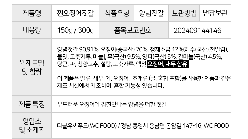 통영애서 찐오징어젓갈 150g / 300g