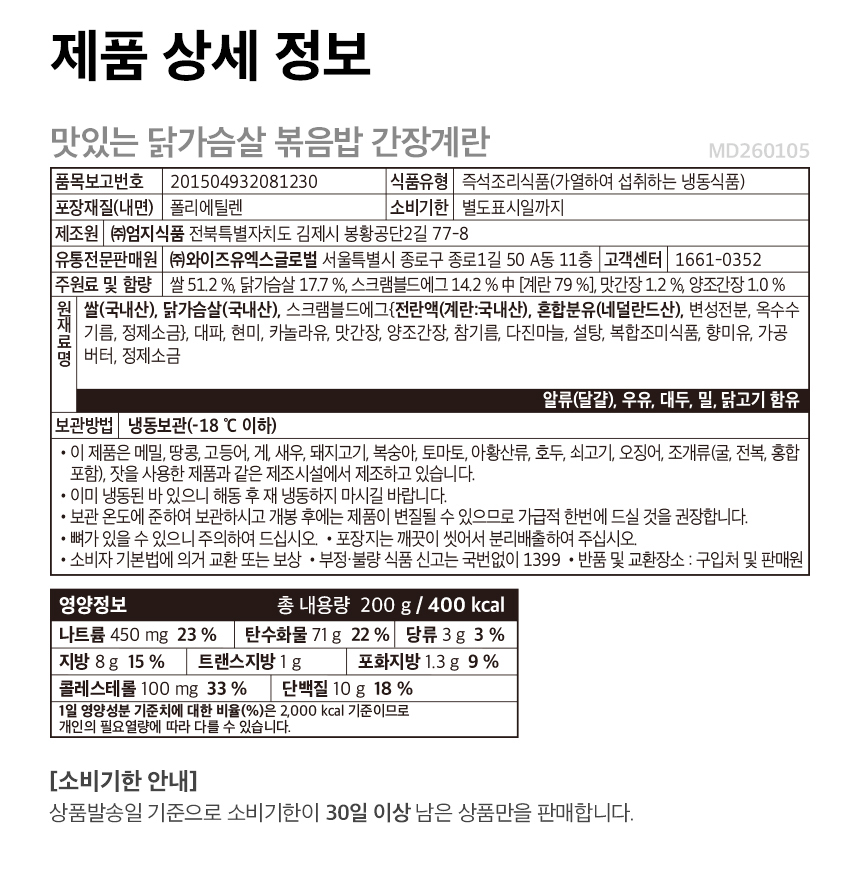 [저당] 맛있는 닭가슴살 간장계란 볶음밥 (200g×20팩)