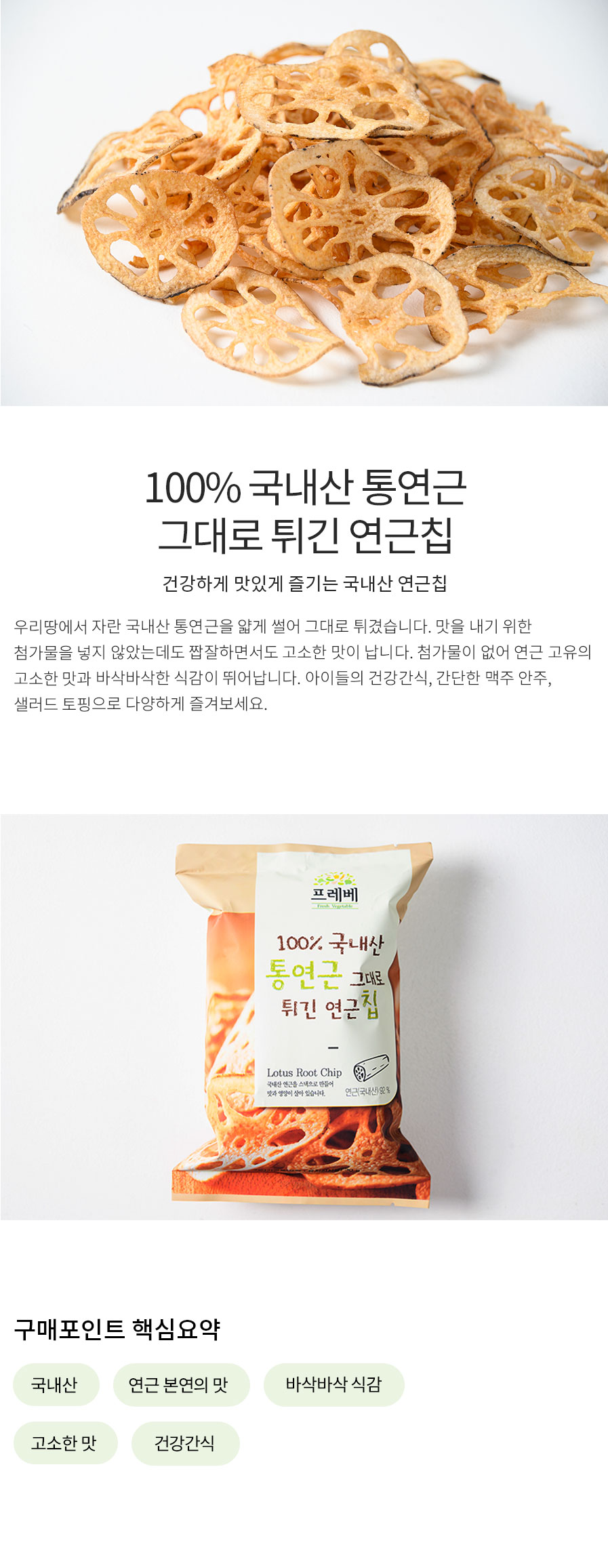 100% 국내산 통연근 그대로 튀긴 연근칩