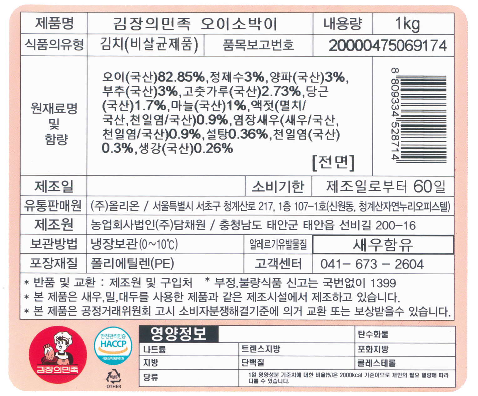 [HACCP, 국산, 無화학첨가, 無향미증진, 無색소, 無방부제]