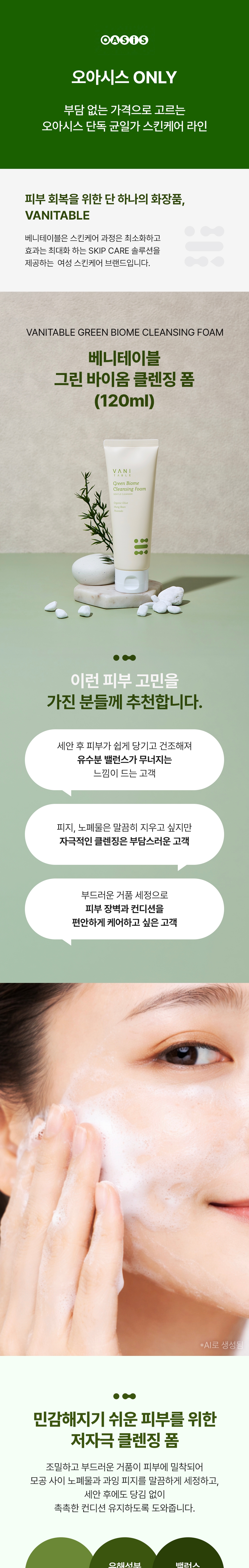 오직 오아시스에서만 판매하는 스킨 케어 균일가 라인! 예민한 피부도 사용 가능한 저자극 클렌징 폼