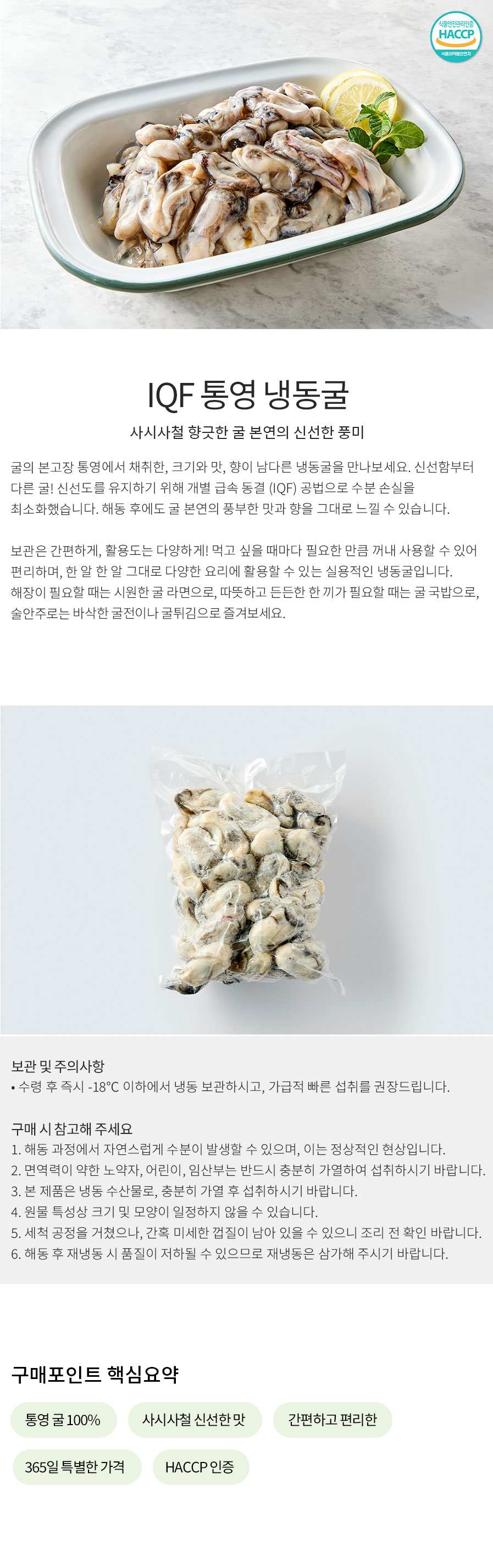 ✔개별 급속 동결 (IQF) 공법으로 신선한 굴