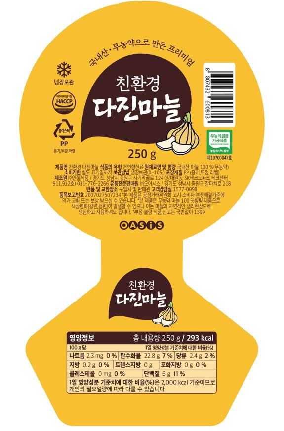 무농약 마늘 100% 제품으로 소비기한이 길지 않습니다.