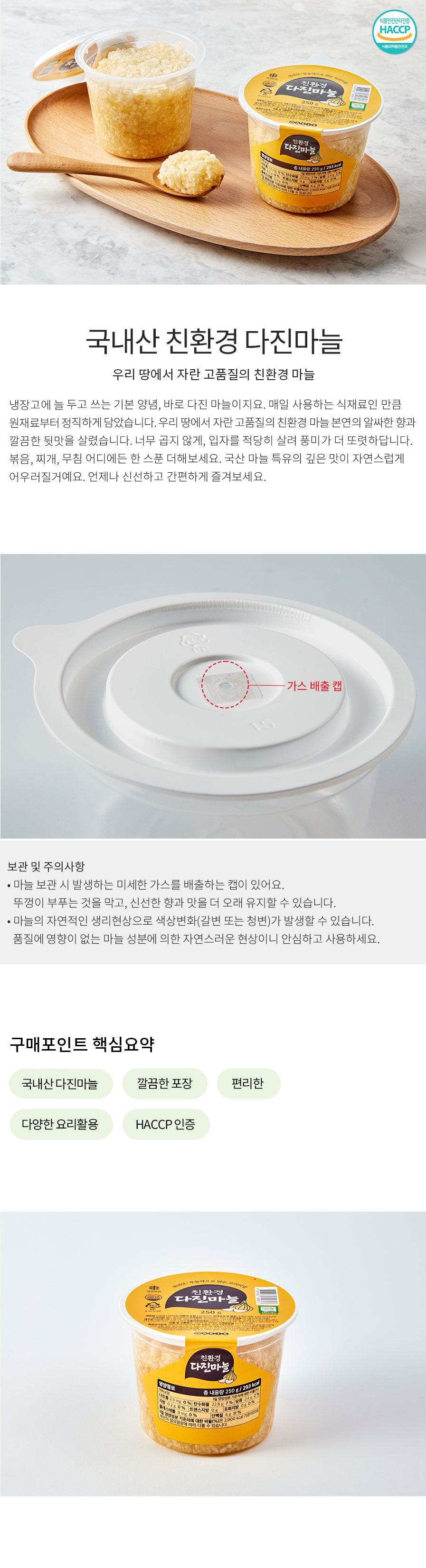 [입점특가] 친환경 국산 무첨가 다진마늘 (250g)