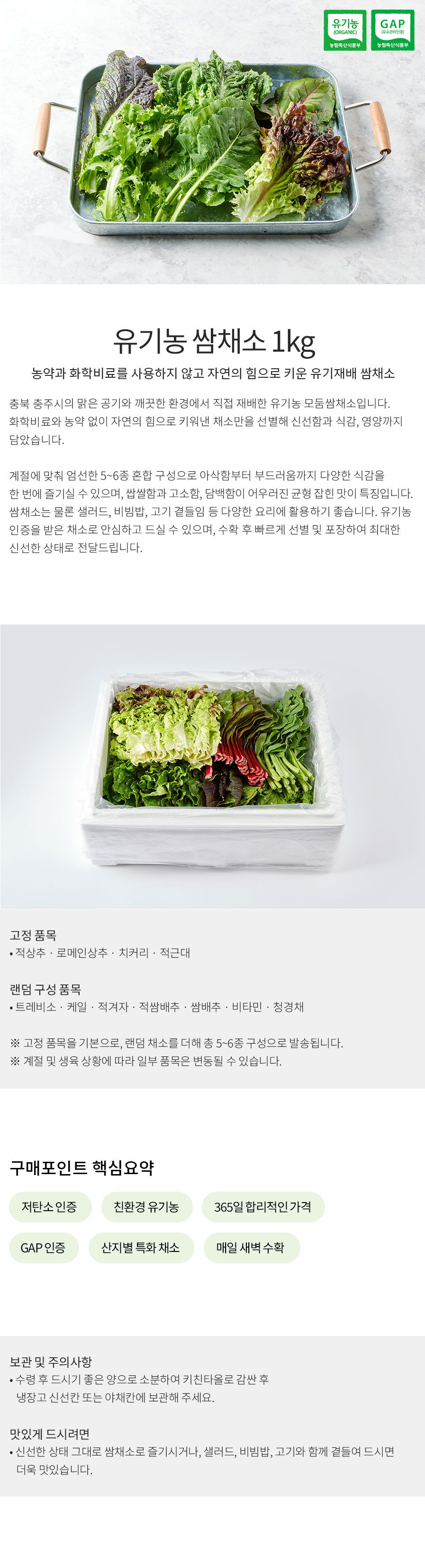 유기농 모듬쌈채소(1kg)