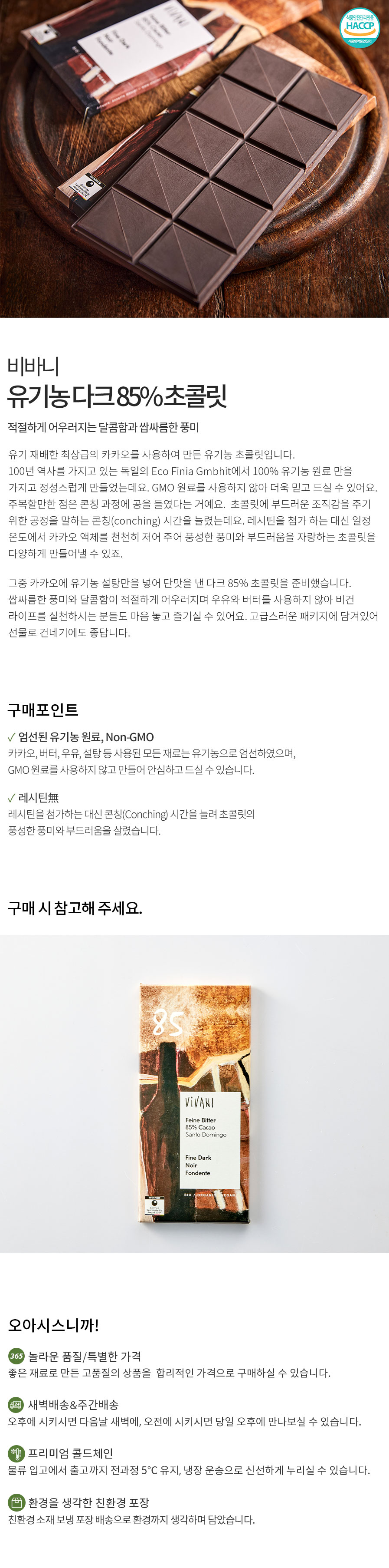 유기 재배한 최상급의 카카오를 사용하고, GMO 원료 없이 만든 유기농 초콜릿.