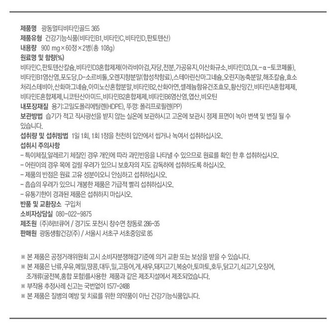 [4개월][광동] 멀티비타민골드 900mg X 60정