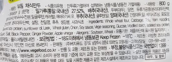 두류가공품46.18%(대만산)[대두분리단백55%,탈지대두분말,옥수수전분,밀글루텐,캐러멜],양파(국내산),물엿,간장[탈지대두(수입산),정제수,소맥(밀),천일염,액상과당],옥배유,대파,당근,마늘,참기름,정백당,참깨,베지시즈닝,후추 |