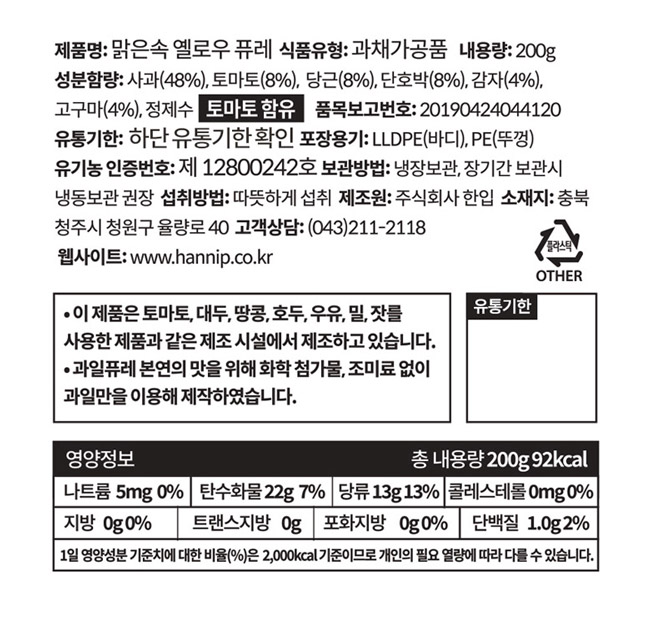 [유기농, 유기가공식품, HACCP, 국내산, 비건, 無화학첨가, 無향미증진, 無색소, 설탕무첨가, 無방부제]