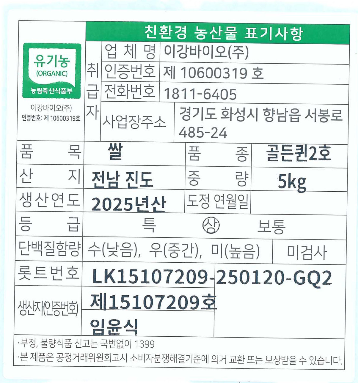 • 오아시스 유기농 월향미 골든퀸2호 소포장(500g x 10입)