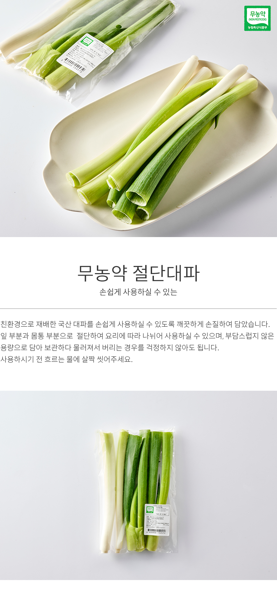 무농약 대파, 잎 부분과 몸통 부분으로 나뉘어 절단한
