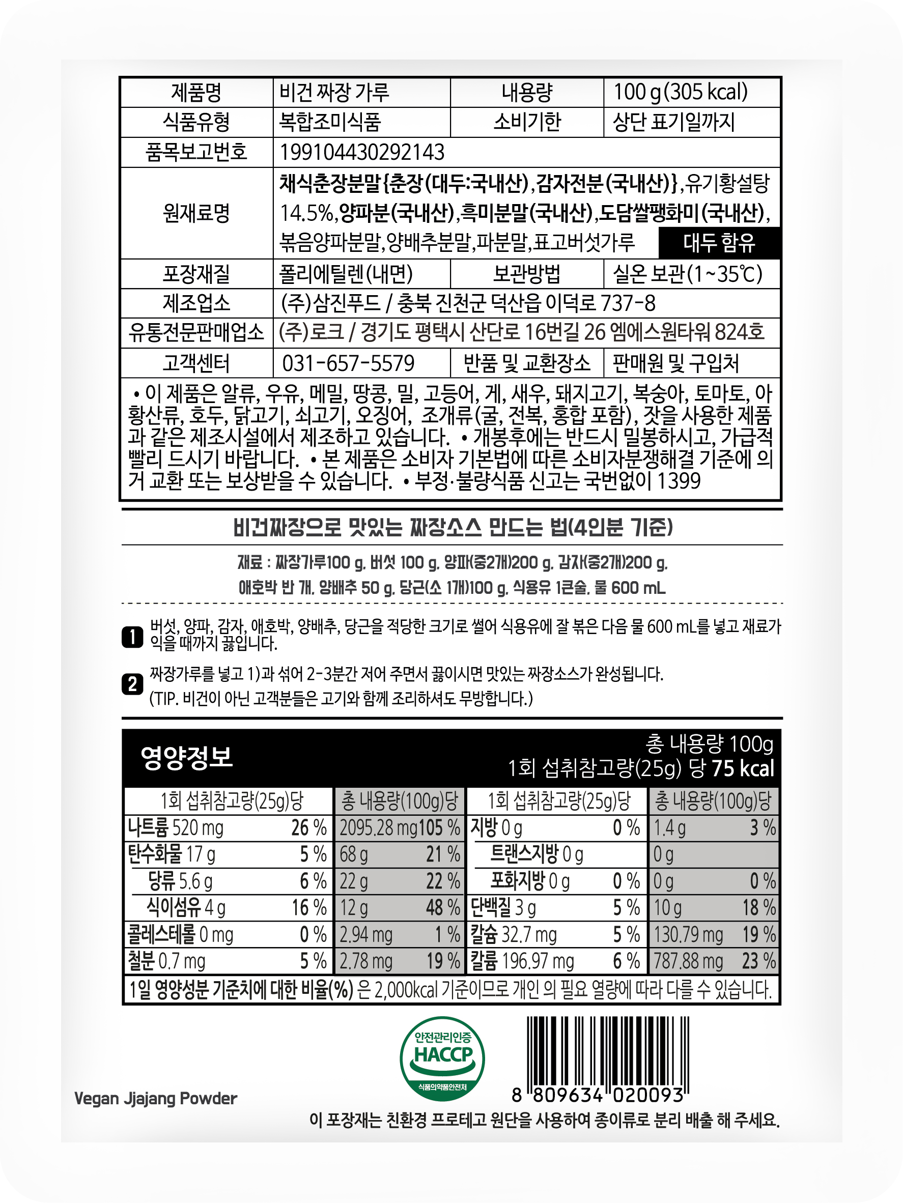 국내산 콩과 쌀로 만든 글루텐 프리 비건 짜장 가루