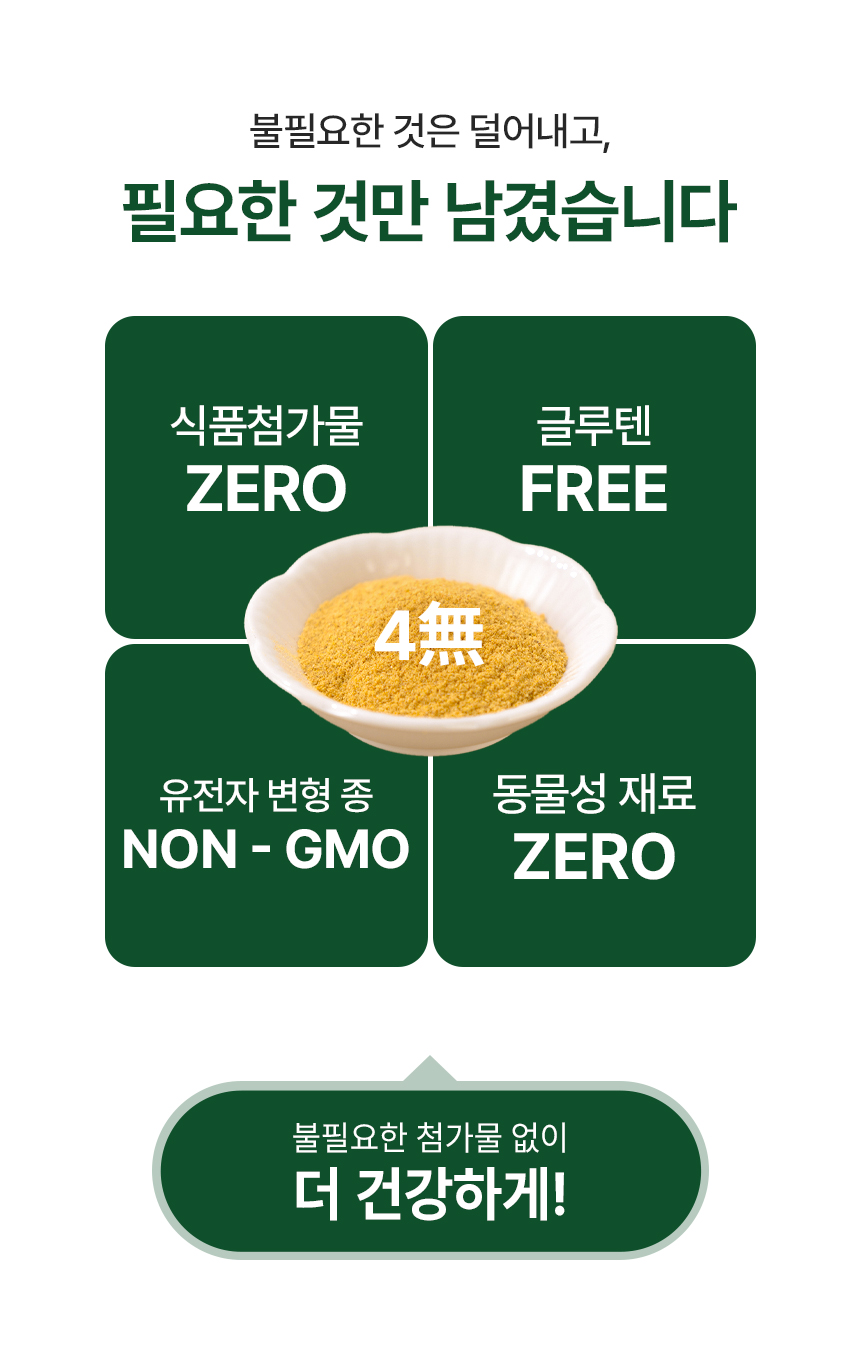 [無농약, HACCP, 국산, 국내산, 비건, 無화학첨가, 無향미증진, 無색소, 無방부제, 無표백, 글루텐프리, 락토프리, NON GMO]