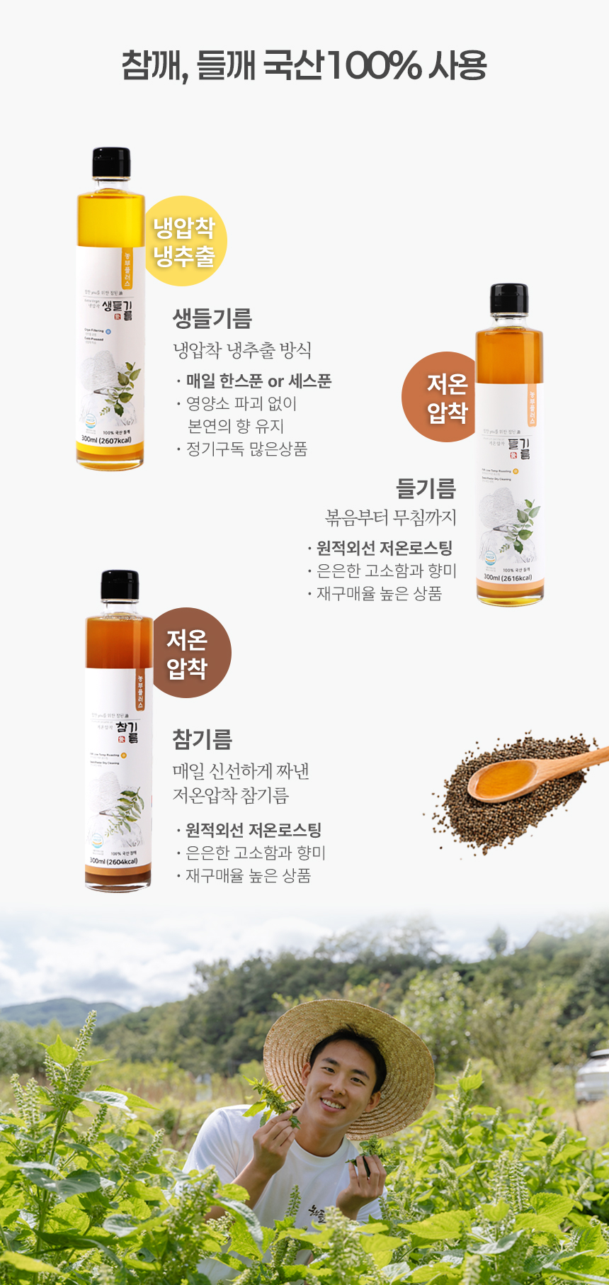 주문확인 후 당일 착유하는 신선하고 깨끗한 국산 생들기름 들기름 참기름