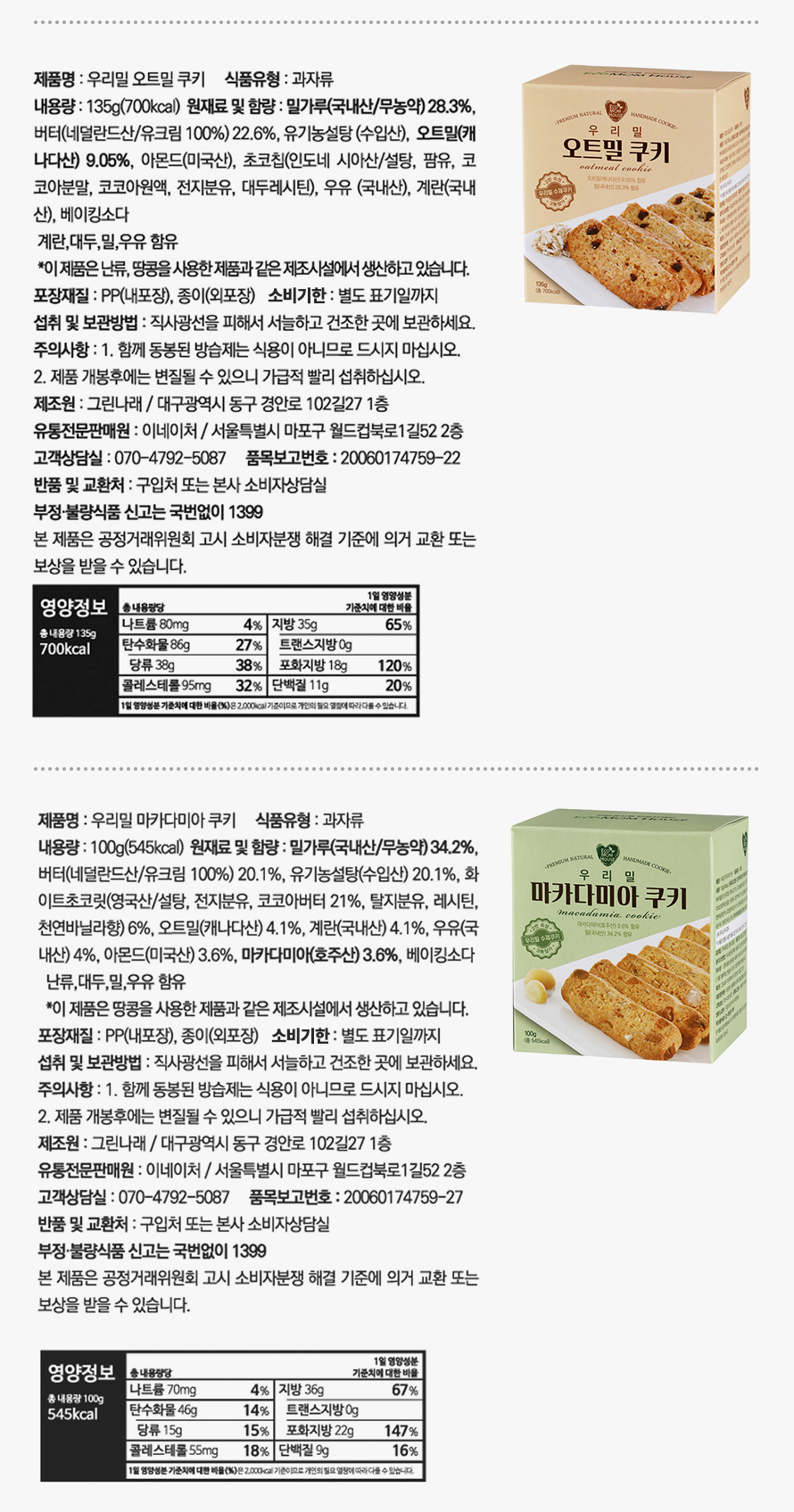 • 에코맘하우스 우리밀 수제 쿠키 선물 세트 4종