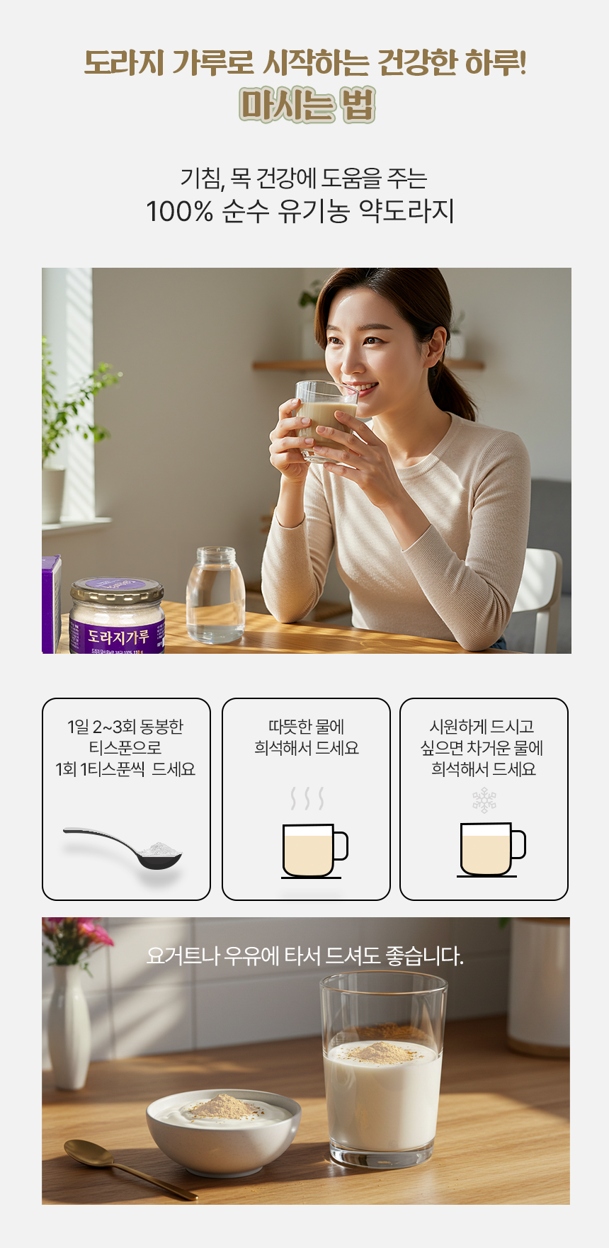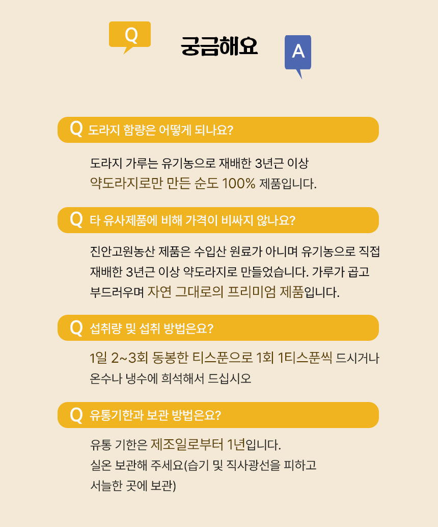 고원의 청정지역 진안 능길에서 직접 재배, 제조한 친환경 도라지가루