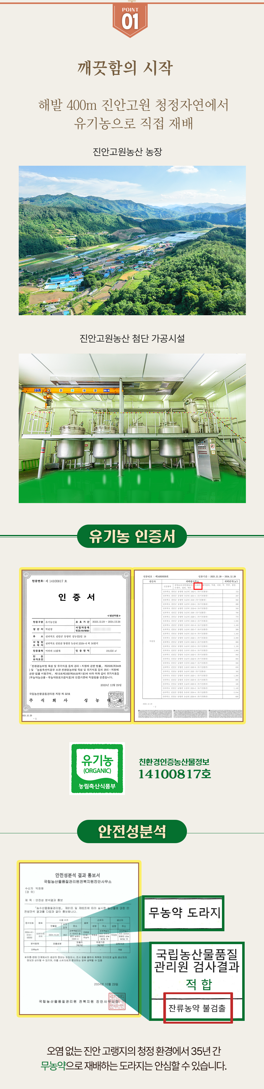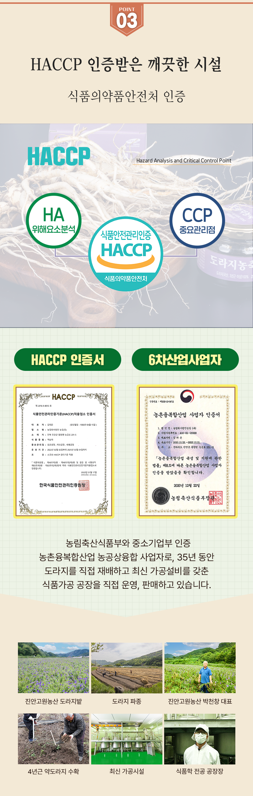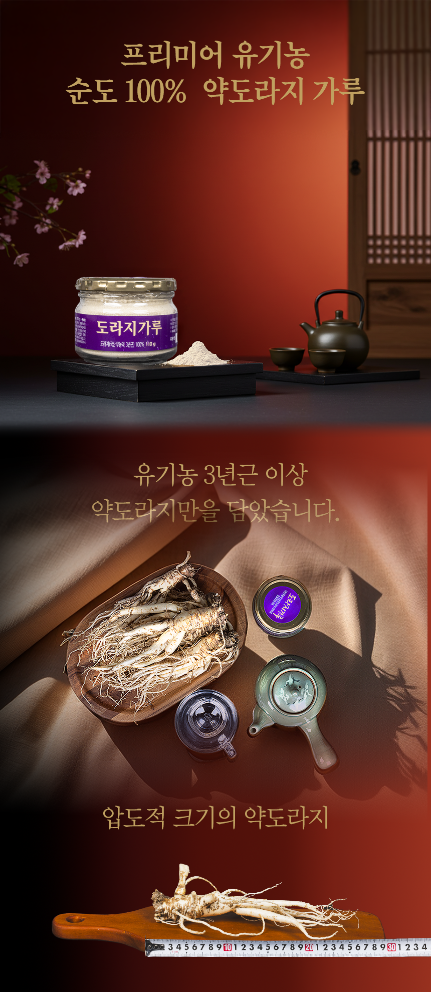 무농약으로 직접 재배한 3년근 약도라지 제품으로 자석봉, 금속검출기 등 미세 공정을 거친 HACCP 인증 순도 100% 도라지가루
