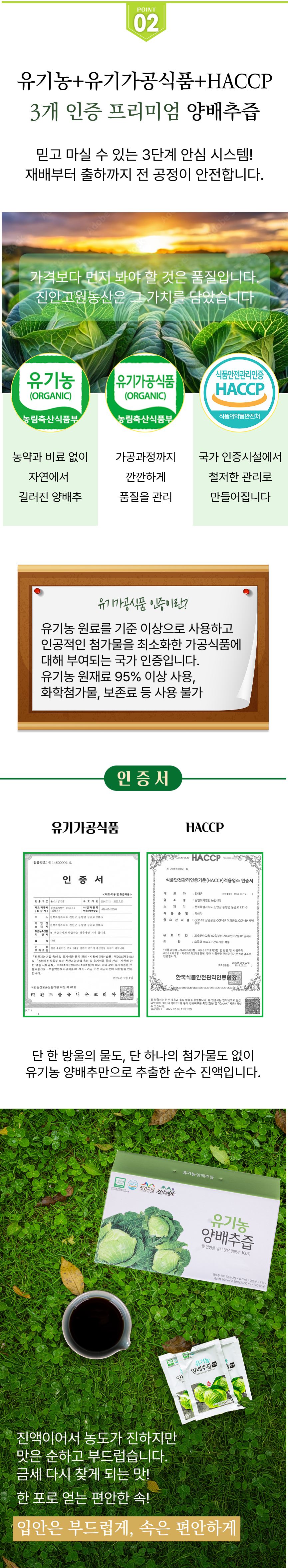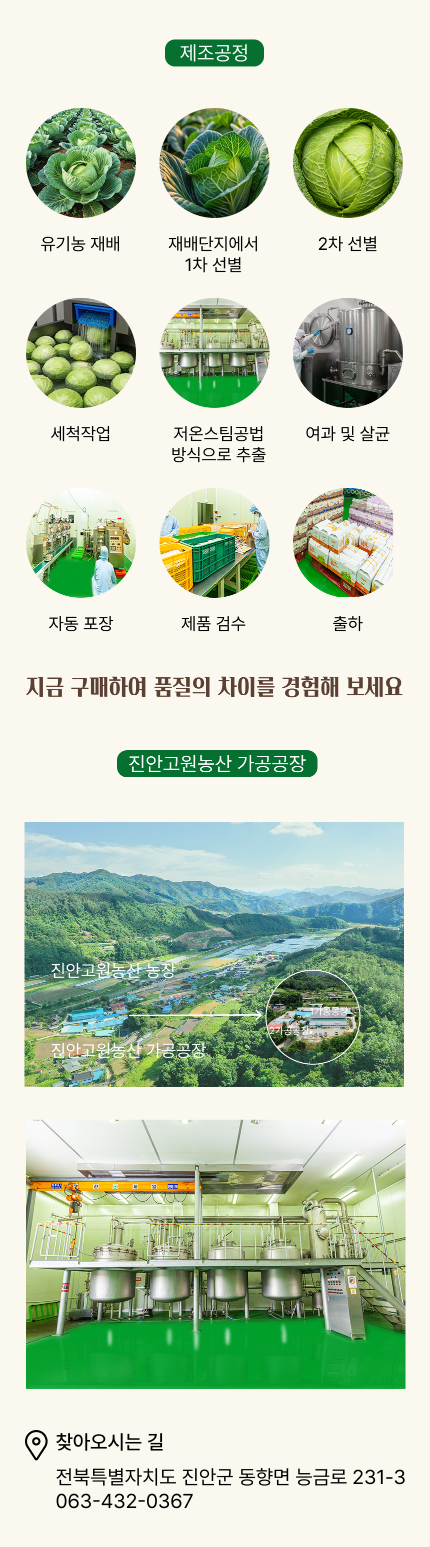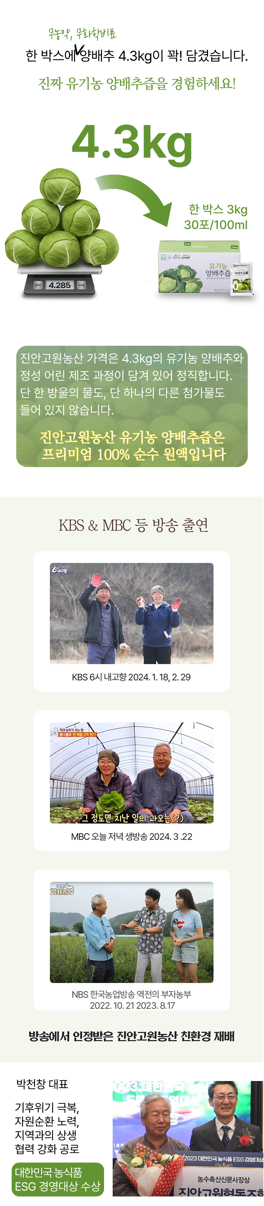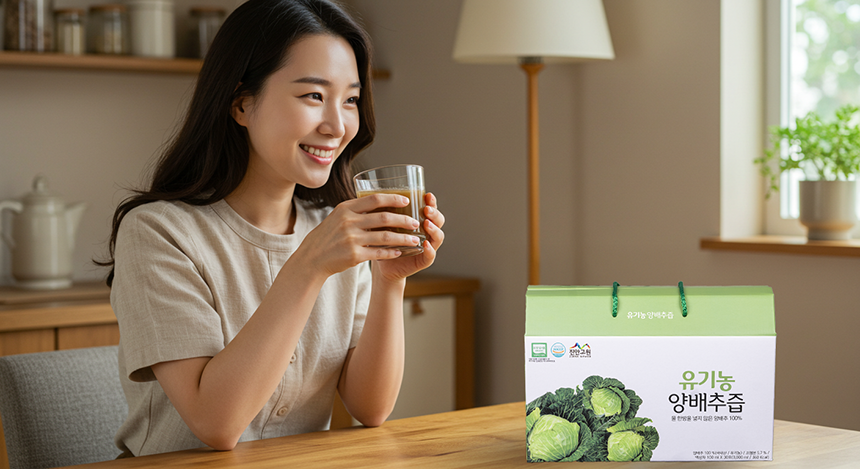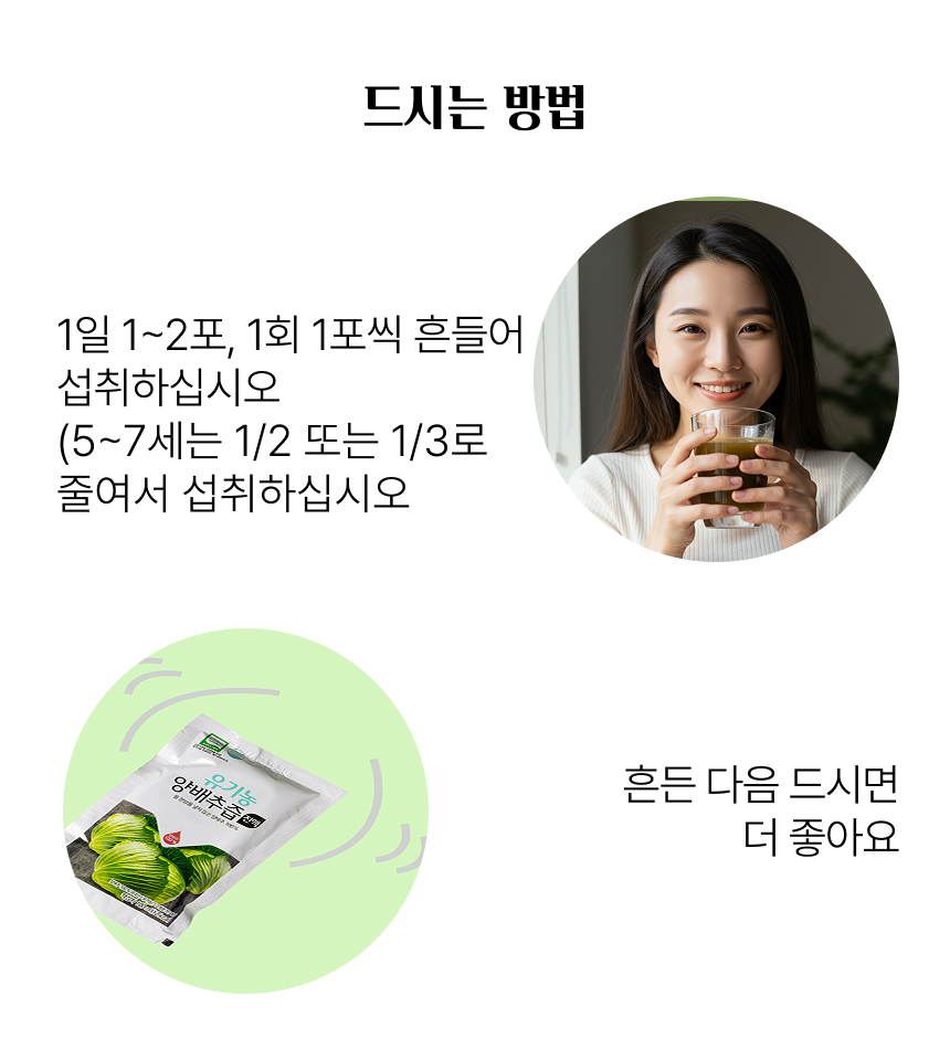 물과 다른 첨가물을 타지 않은 순수 유기농 100% 양배추로만 만든 비린내 없는 양배추즙