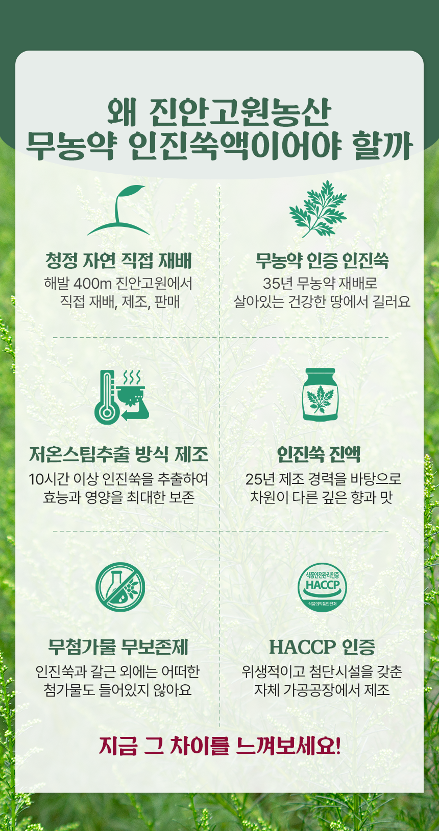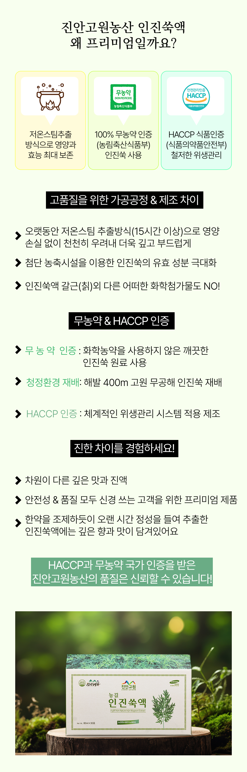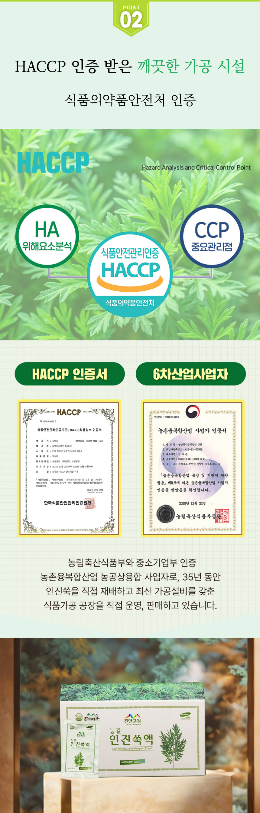 무농약으로 직접 재배한 친환경 인진쑥액으로 HACCP 인증을 받은 제품