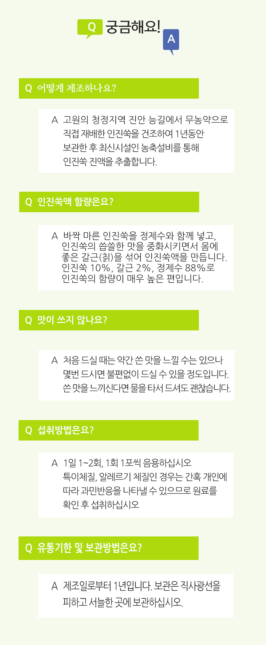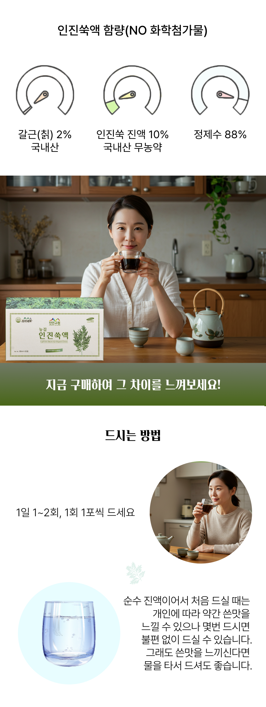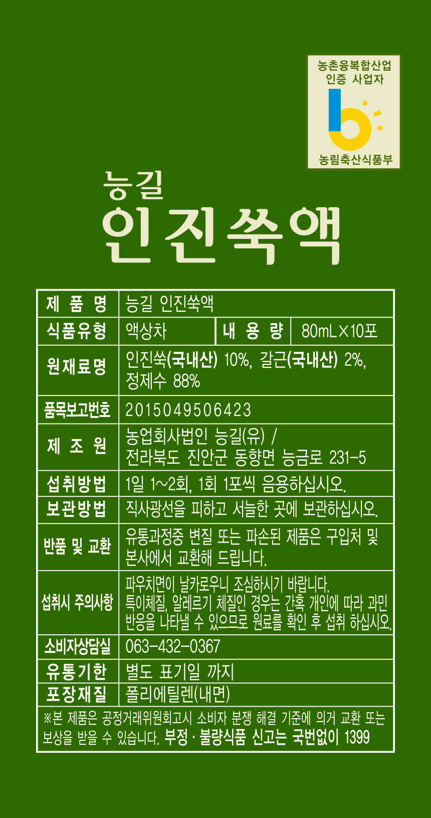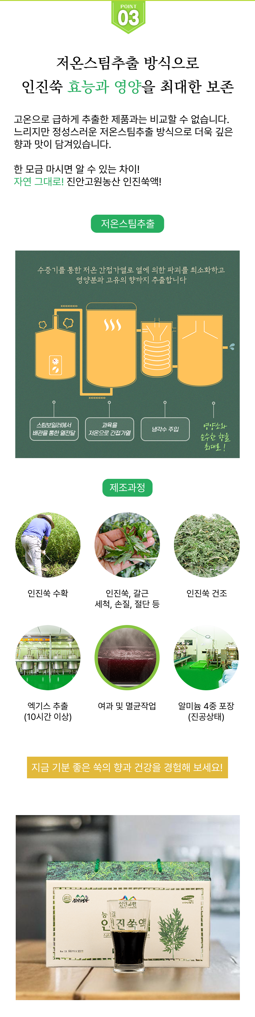 무농약으로 직접 재배한 친환경 인진쑥액으로 HACCP 인증을 받은 제품
