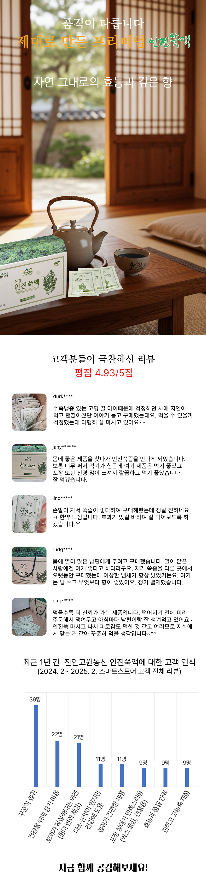 고원의 청정지역에서 직접 재배한 인진쑥으로 만든 제품
