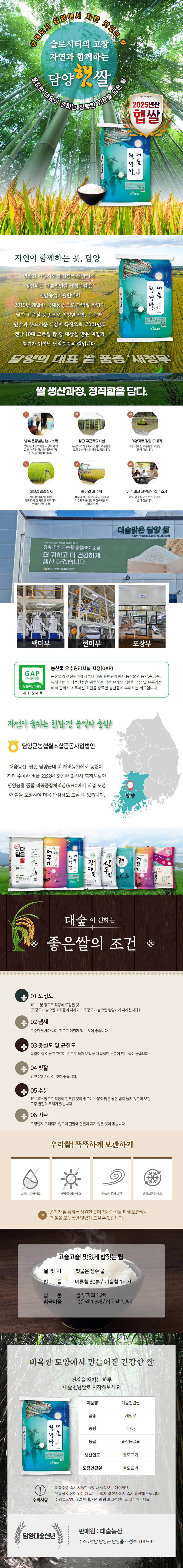GAP 담양의 비옥한 토양에서 만들어진 건강한쌀 대숲천년쌀 20kg(당일도정)