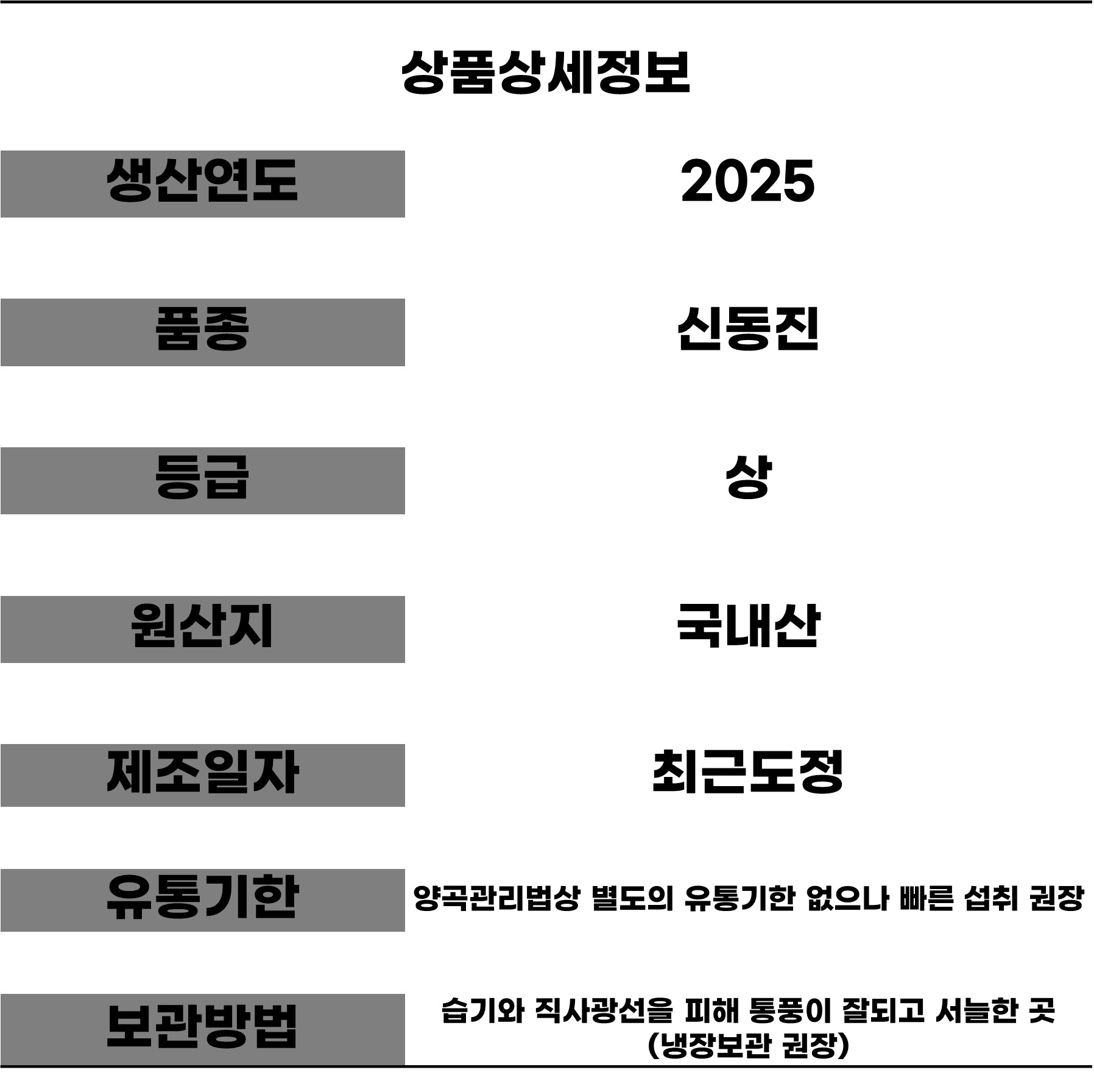 생산연도:2025년산 / 원산지 : 국내산 / 품종 : 신동진/ 등급 : 상