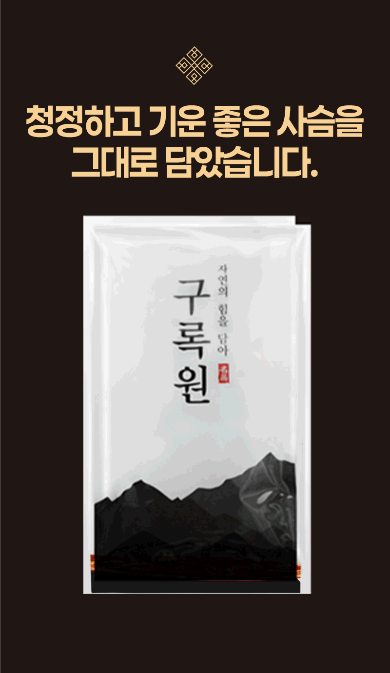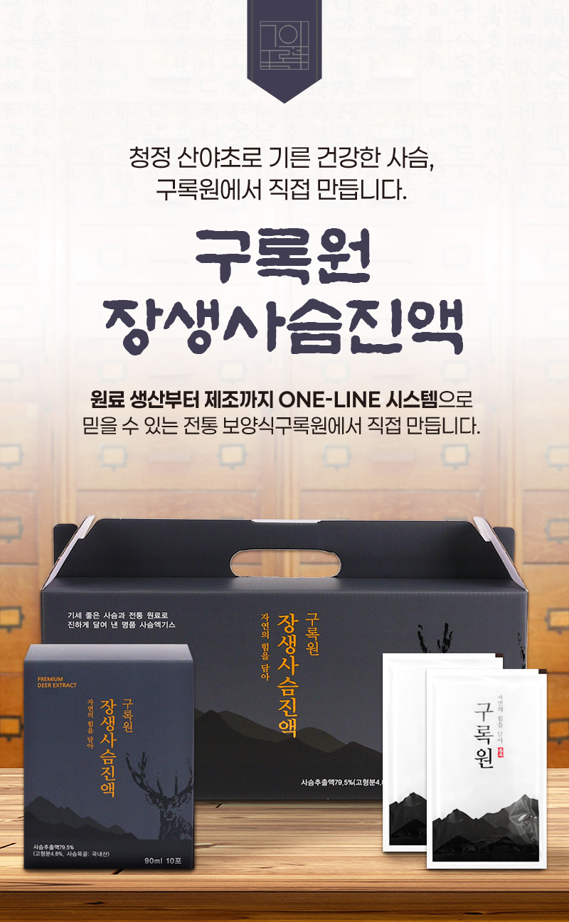 장생사슴진액 고단백 저칼로리의 국내산 사슴과 고경원 대표한약사의 전통원료배합, 구록원의 특허중탕기술로 진하면서 깔끔한 맛